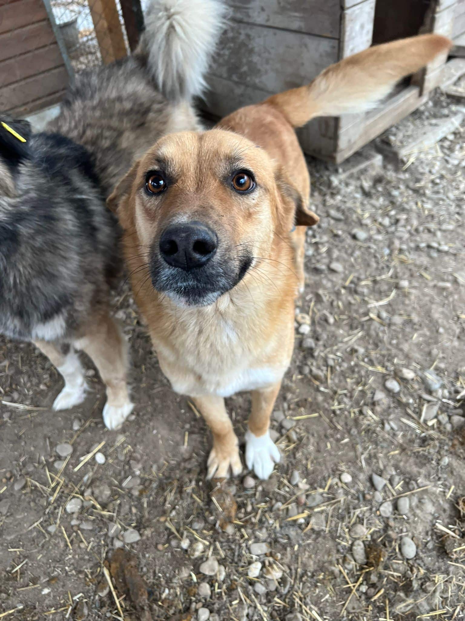 Ein toller, sehr menschenbezogener und aufgeweckter Rüde. Er war immer bei uns, hat interessiert zugeschaut was wir dort machen. Immer wieder forderte er uns sanft zum Spiel auf und zeigte sich verträglich mit den anderen Hunden. Er lässt sich gerne streicheln und wollte uns nicht mehr von der Seite weichen.