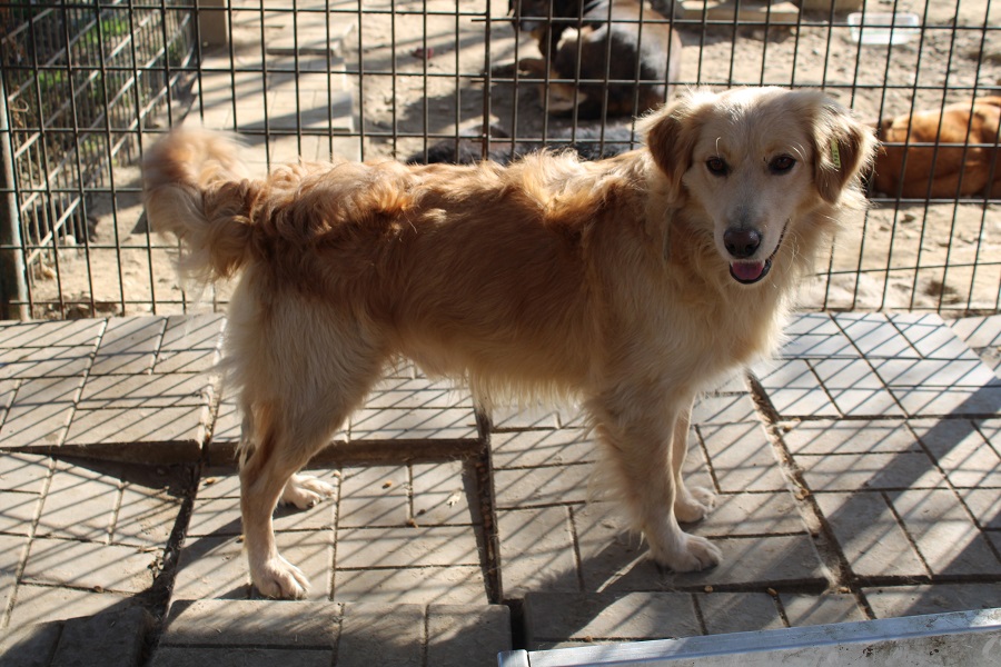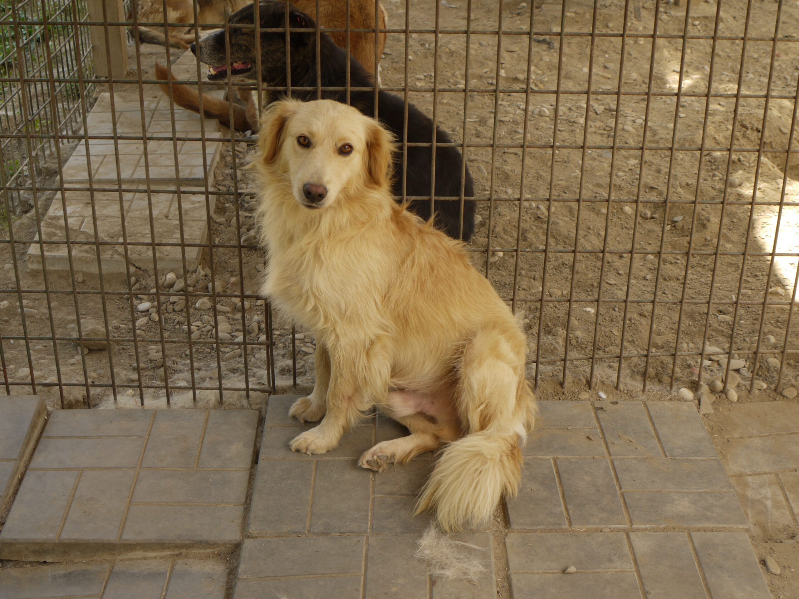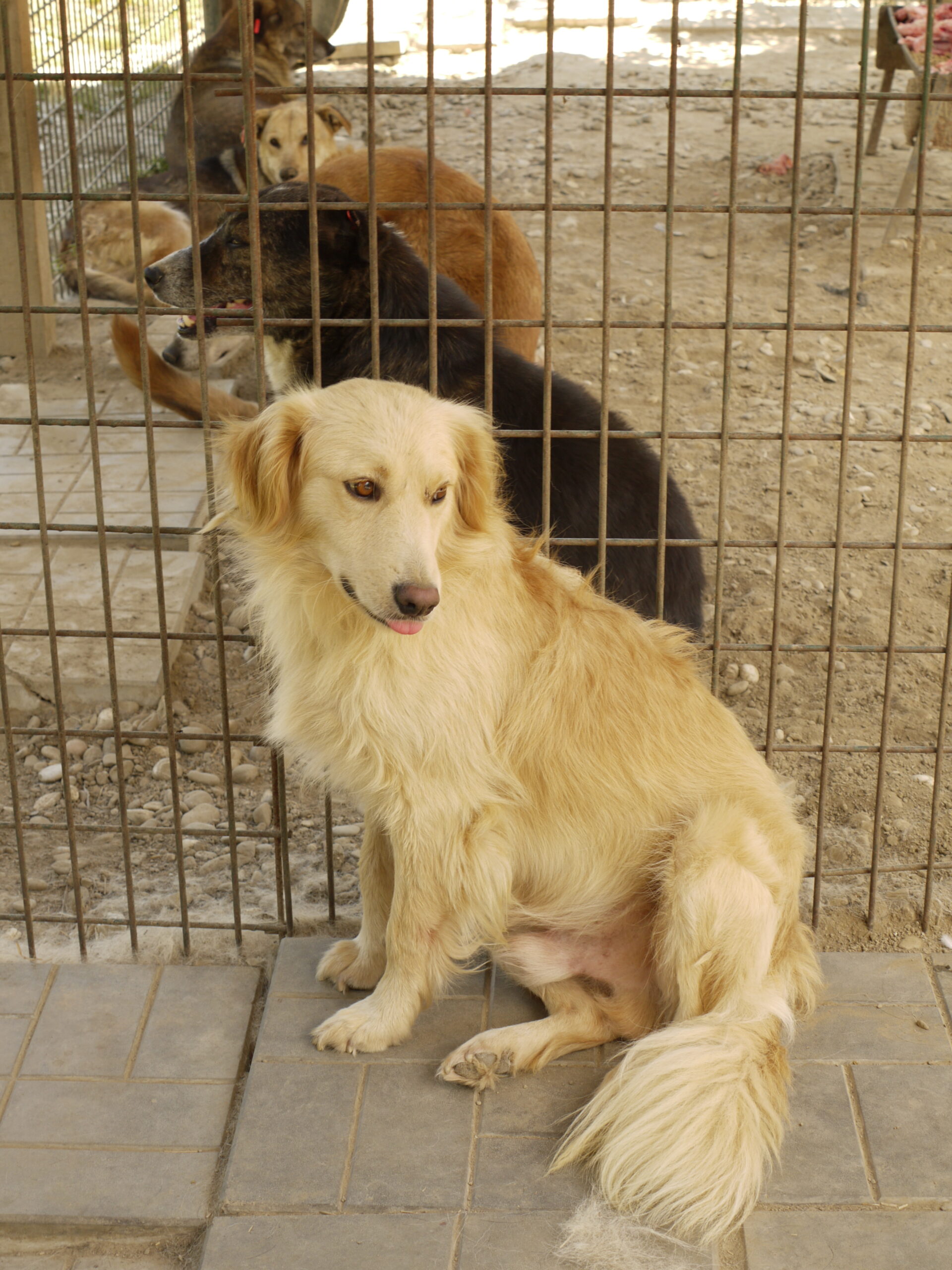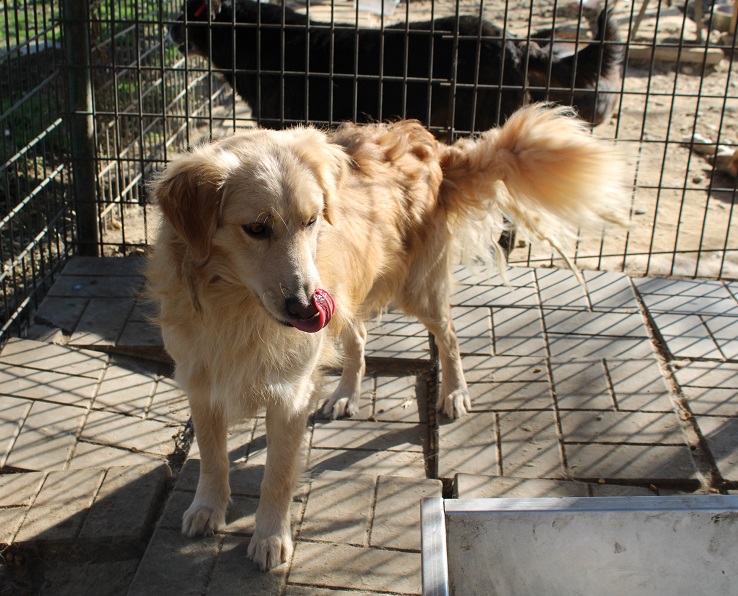 FLIPP schlägt sich als Kleinster in seinem Kennel durch. Er lässt sich streicheln, ist sehr nett und beobachtet aufmerksam.