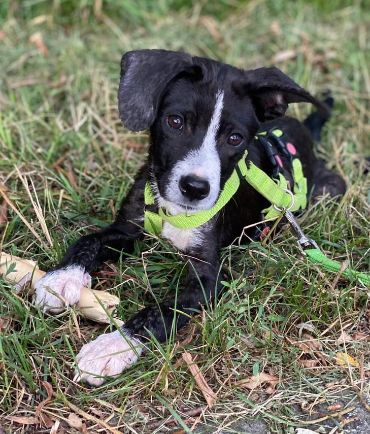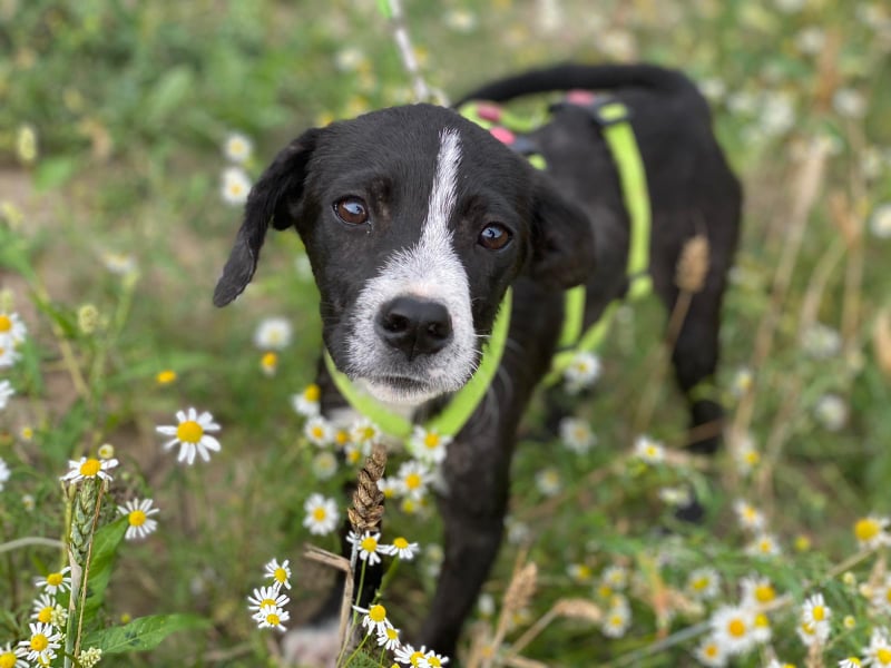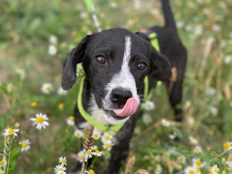 Er verträgt sich ganz prima mit anderen Hunden. Und Flo möchte noch ganz viel lernen. Das muss er auch denn: Es klappt noch nicht so richtig mit der Stubenreinheit, alleine bleiben fällt noch schwer und wie das an und mit der Leine funktioniert muss auch noch vertieft werden.