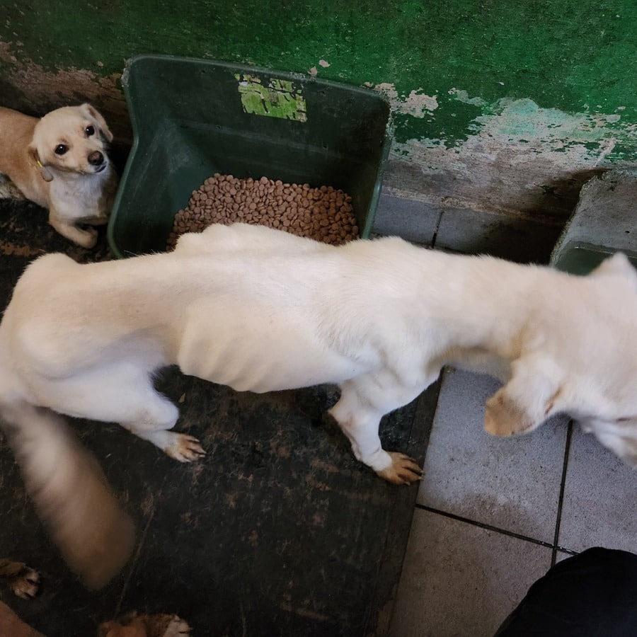 Klapperdürre Hündin wird nicht ans Futter gelassen (10/24)