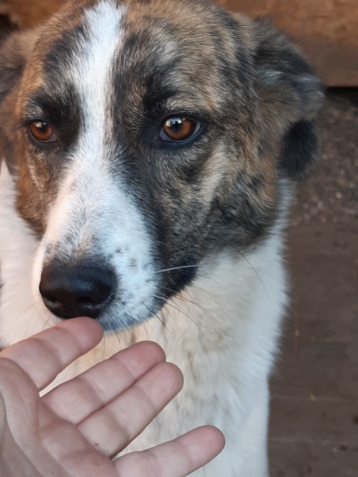 wurde am Shelter-Tor angebunden freundlich, sucht neugierig die Nähe, noch vorsichtig weicht zurück, wenn man sie anfassen möchte, verträglich