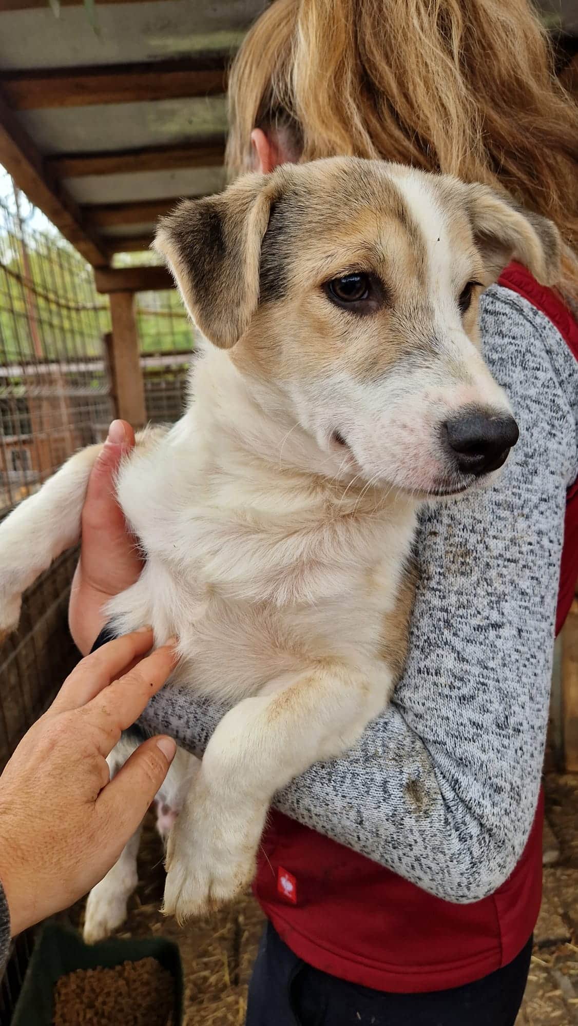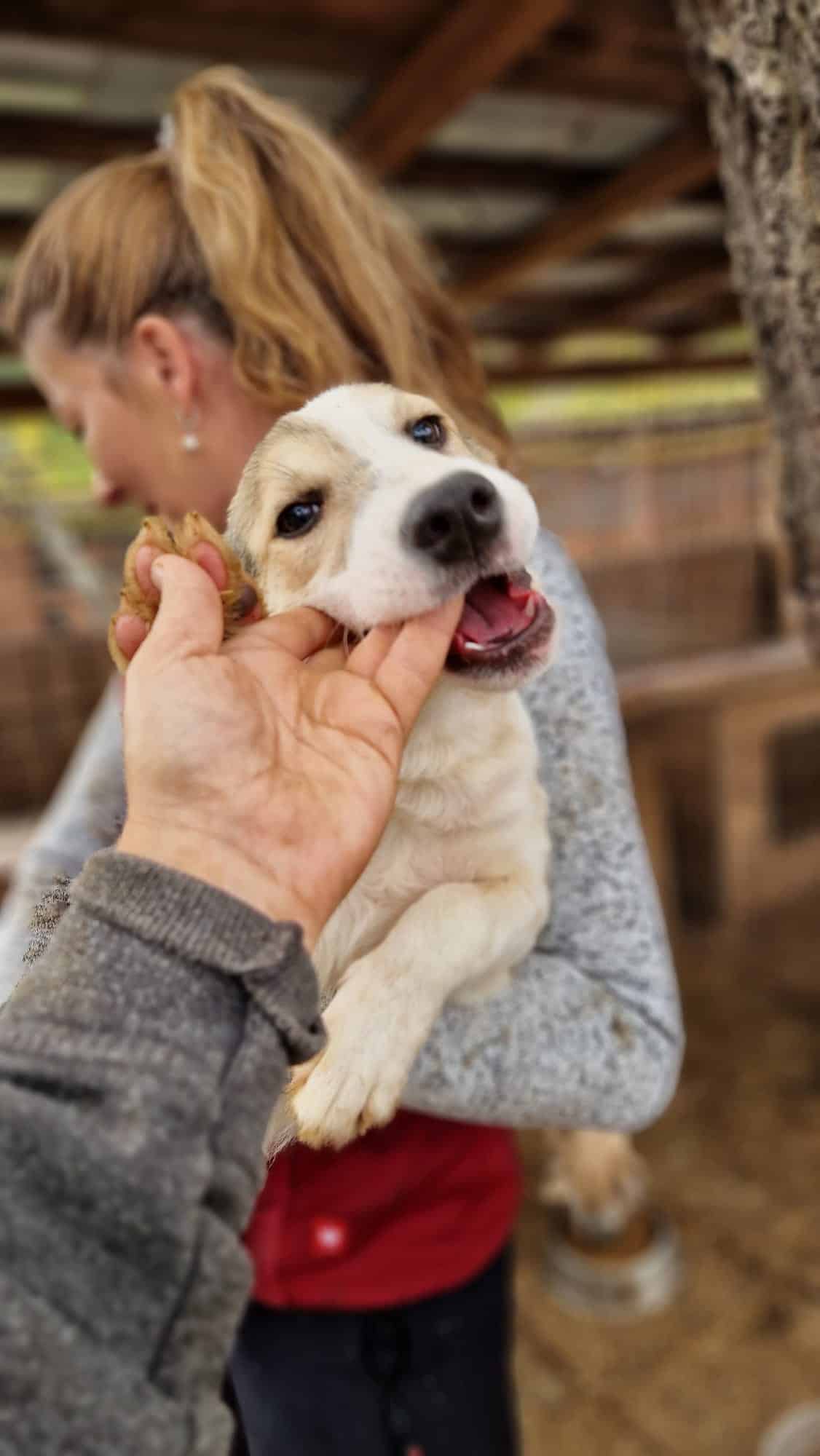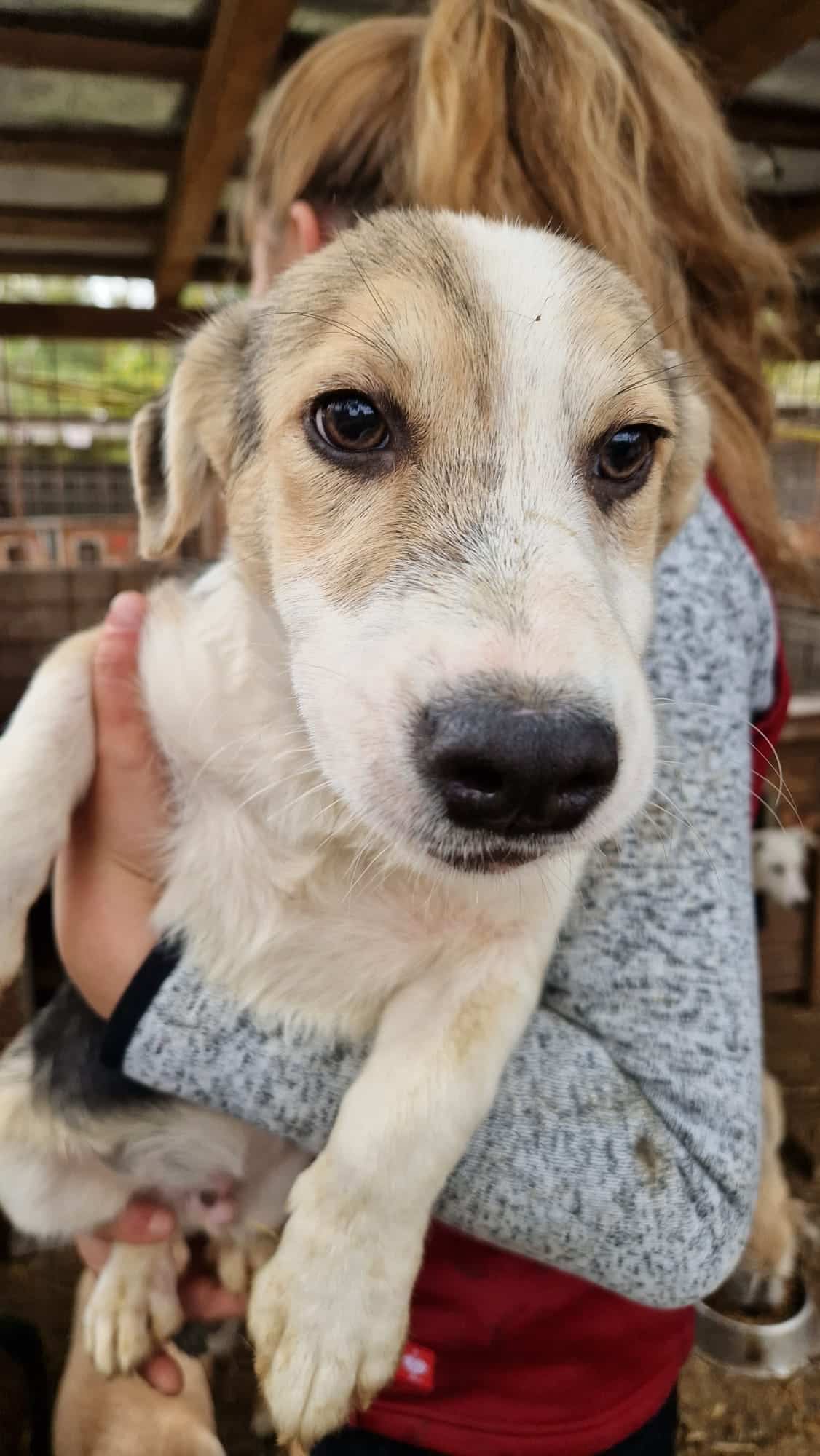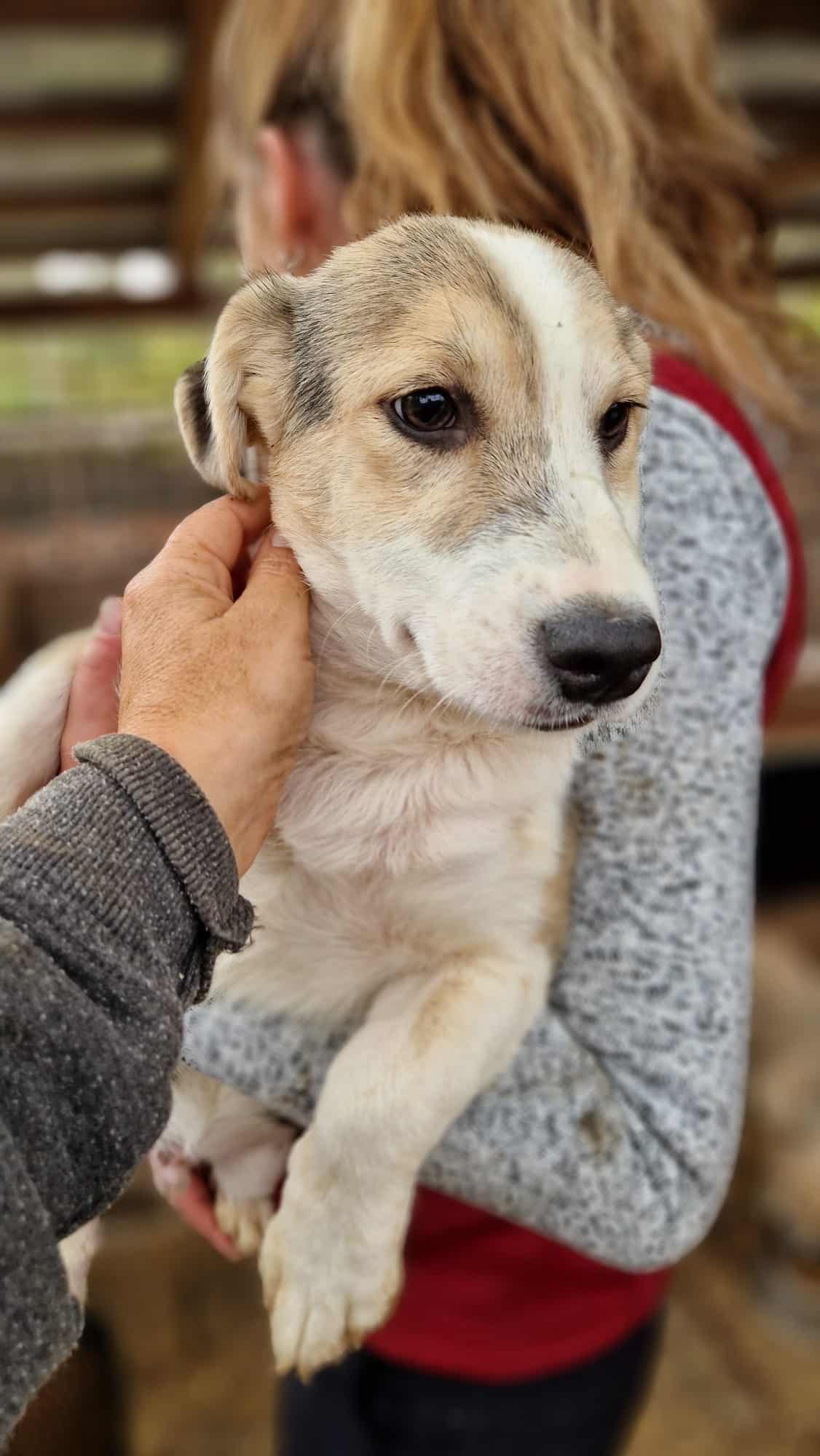 FLUMMY ist ein kleiner, aufgeweckter und sehr freundlicher Hundejunge, der sich problemlos auf den Arm nehmen und streicheln ließ. Angst vor Menschen hat er keine, er rannte unbedarft durch den Kennel und freute sich über unsere Anwesenheit. Auch mit den anderen Welpen verstand er sich super und zeigte sich absolut welpentypisch.