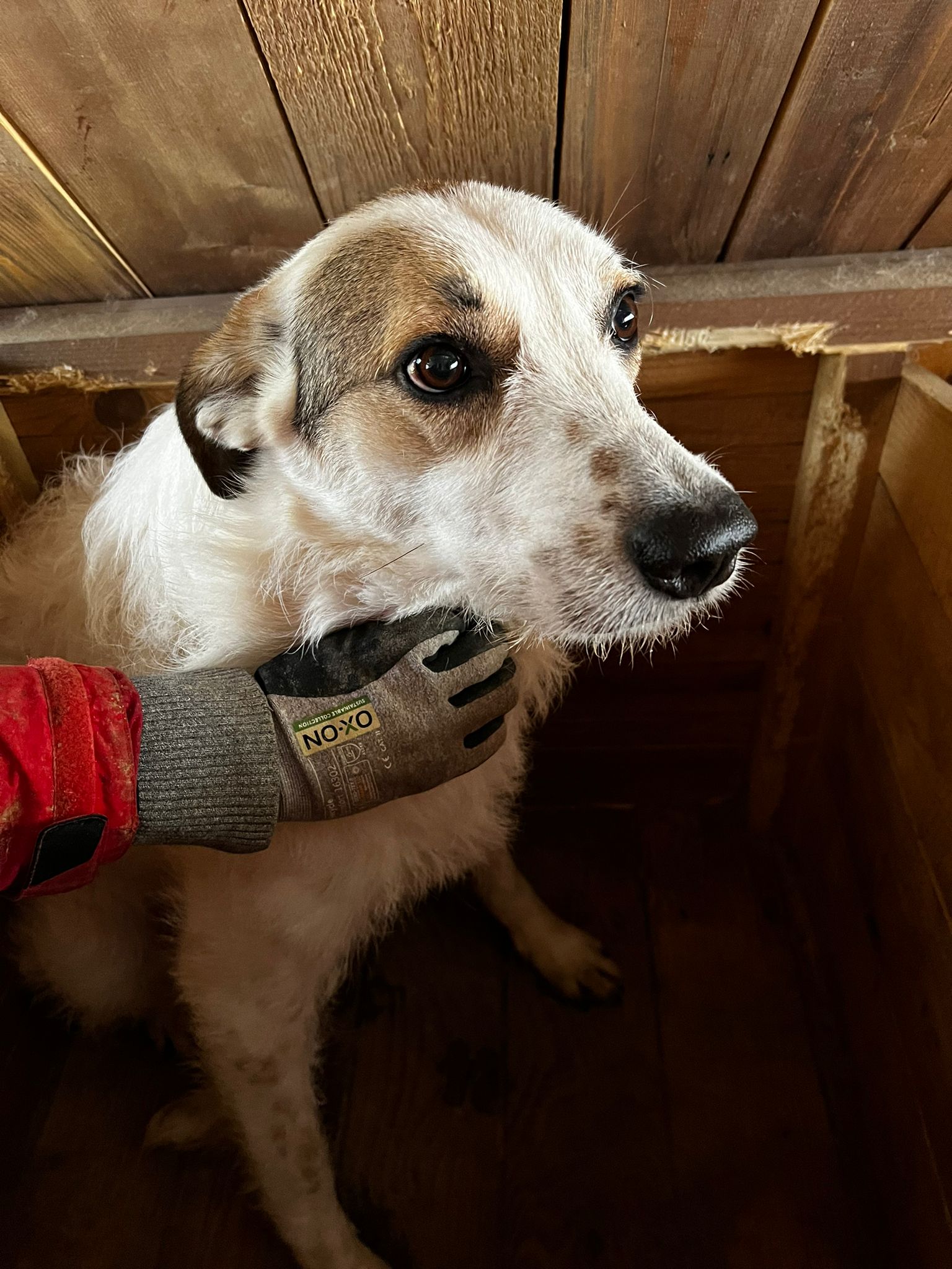 Die liebe Hündin hat sich bei unserem Besuch geöffnet und wir konnten sie gut anfassen. Über vier Jahre wartet sie bereits auf eine Lösung. Sie braucht zeitnah ein liebevolles Zuhause, in der sich die Hündin sicher fühlen und aufblühen kann.