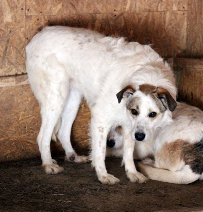 FORINA scheint in ihrer aktuellen Hundegruppe gut zurecht zu kommen. Futter nimmt sie nicht aus der Hand, sie ist sehr zurückhaltend, aber nicht panisch.