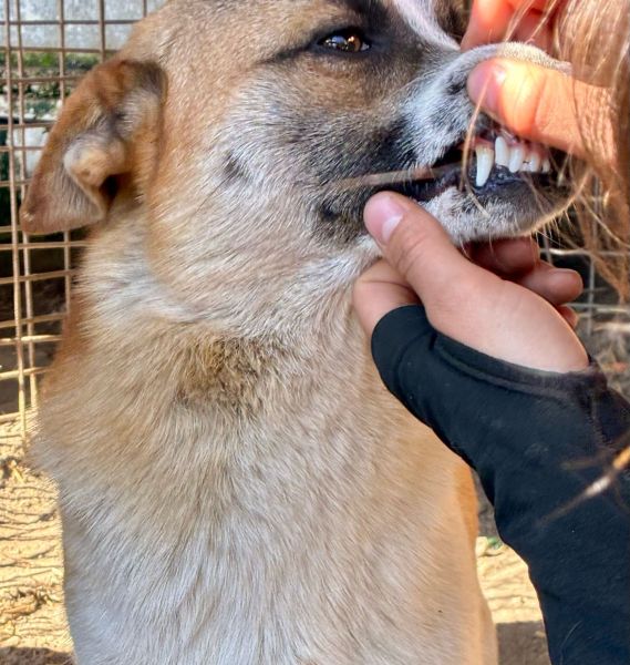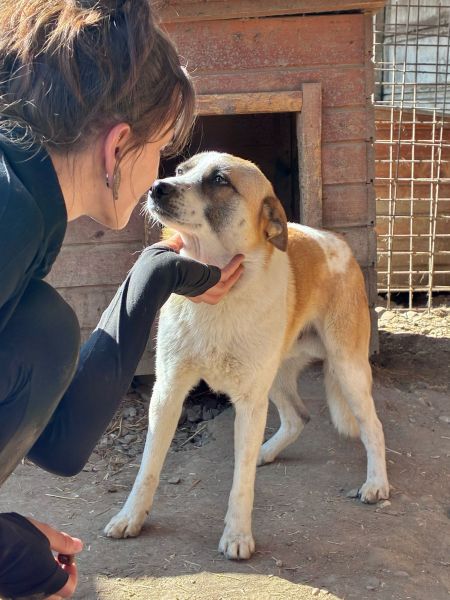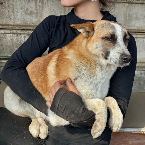 Dieser zarte Rüde musste bereits an seinem Beinchen operiert werden, nachdem er in’s Shelter kam. Davon hat er sich zum Glück komplett erholt und man merkt und sieht es ihm nicht an. Etwas skeptisch beobachtete er uns zunächst aus sicherem Abstand, doch sobald wir uns ihm näherten, ließ er sich bereitwillig überall streicheln und auf den Arm nehmen. Fast schon unterwürfig ließ er alles über sich ergehen, doch schien es nach einer Weile sogar richtig zu genießen. In der Interaktion mit seiner einzigen Kennelgenossin, einer Hündin, zeigte er sich verträglich.