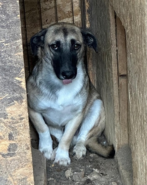 FOXI musste leider schon viele einsame und traurige Tage im Shelter ohne menschlichen Kontakt verbringen. Er hält sich in seiner Hütte auf. Dort können wir ihn unter Bedrängung noch anfassen. Anfangs schnappte er kurz ab, verhielt sich dann aber defensiv. Der kleine Kerl lebt in einem gemischten Rudel und ist verträglich.