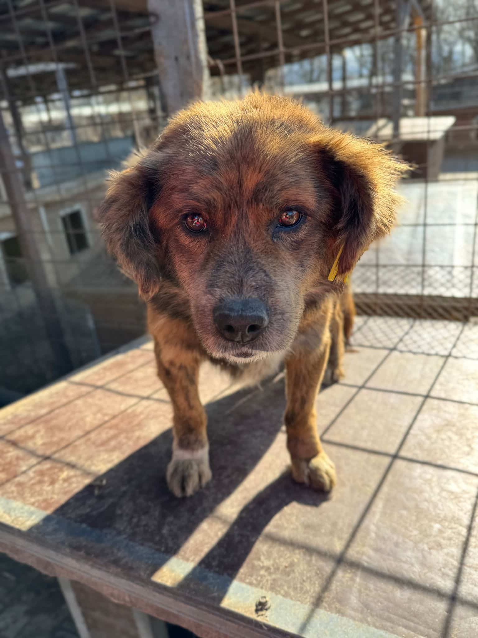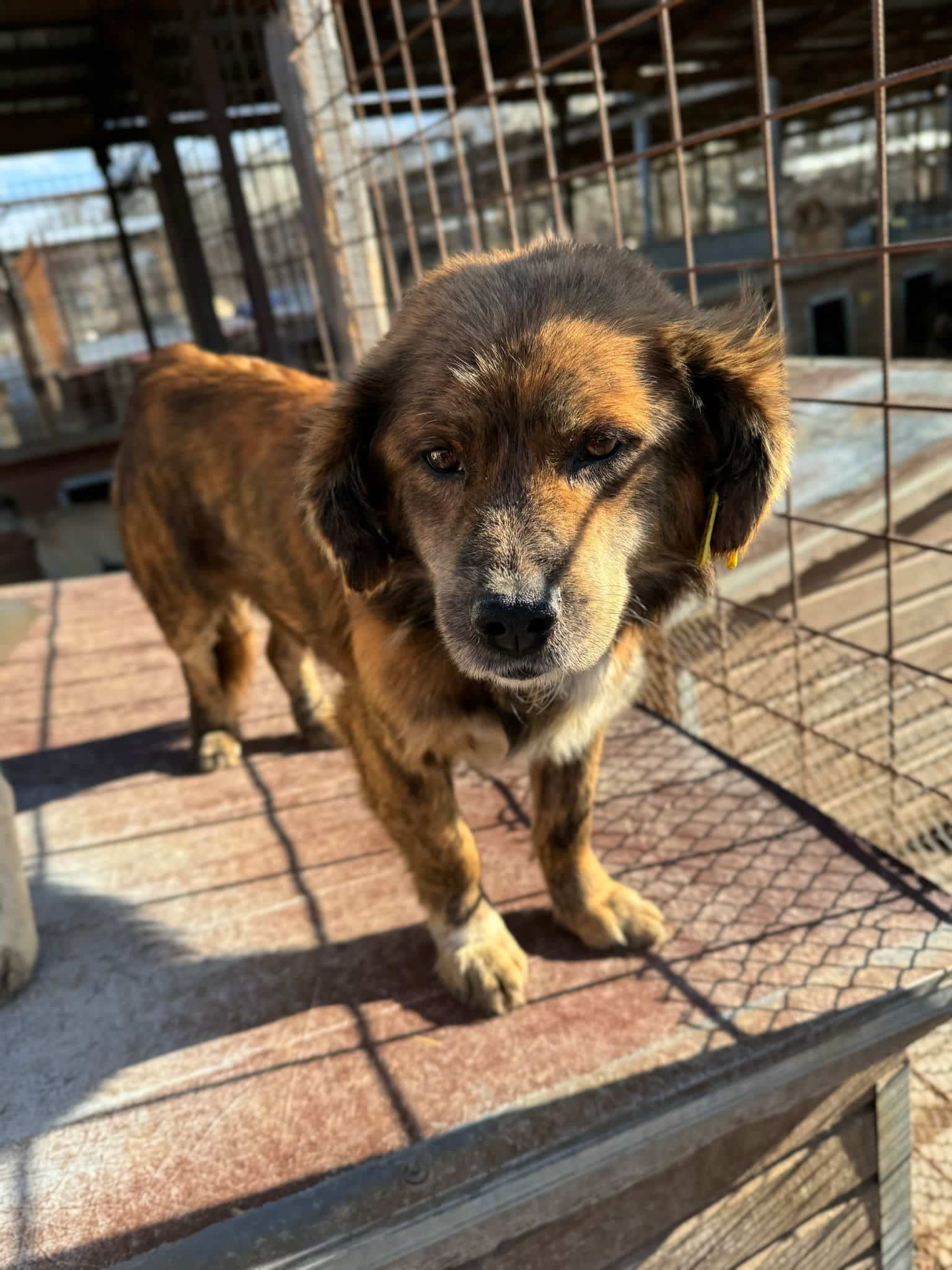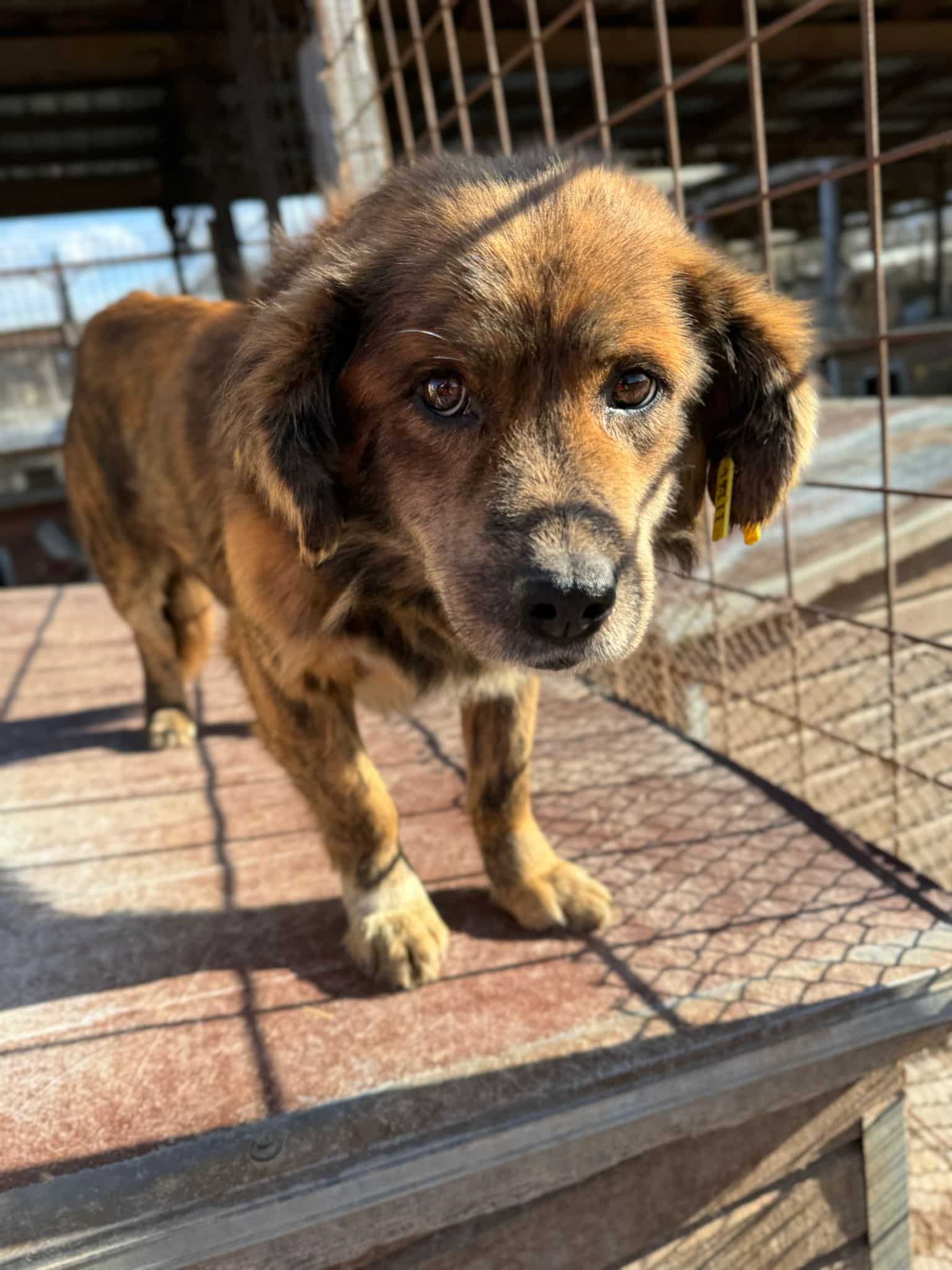 Der kleine FRANKY zeigte sich in seinem stressigen Kennel als ein netter, eher zurückhaltender Rüde. Er war immer in unserer Nähe und verhielt sich sehr ruhig. Wir konnten ihn gut streicheln, er wollte aber nicht bedrängt werden.