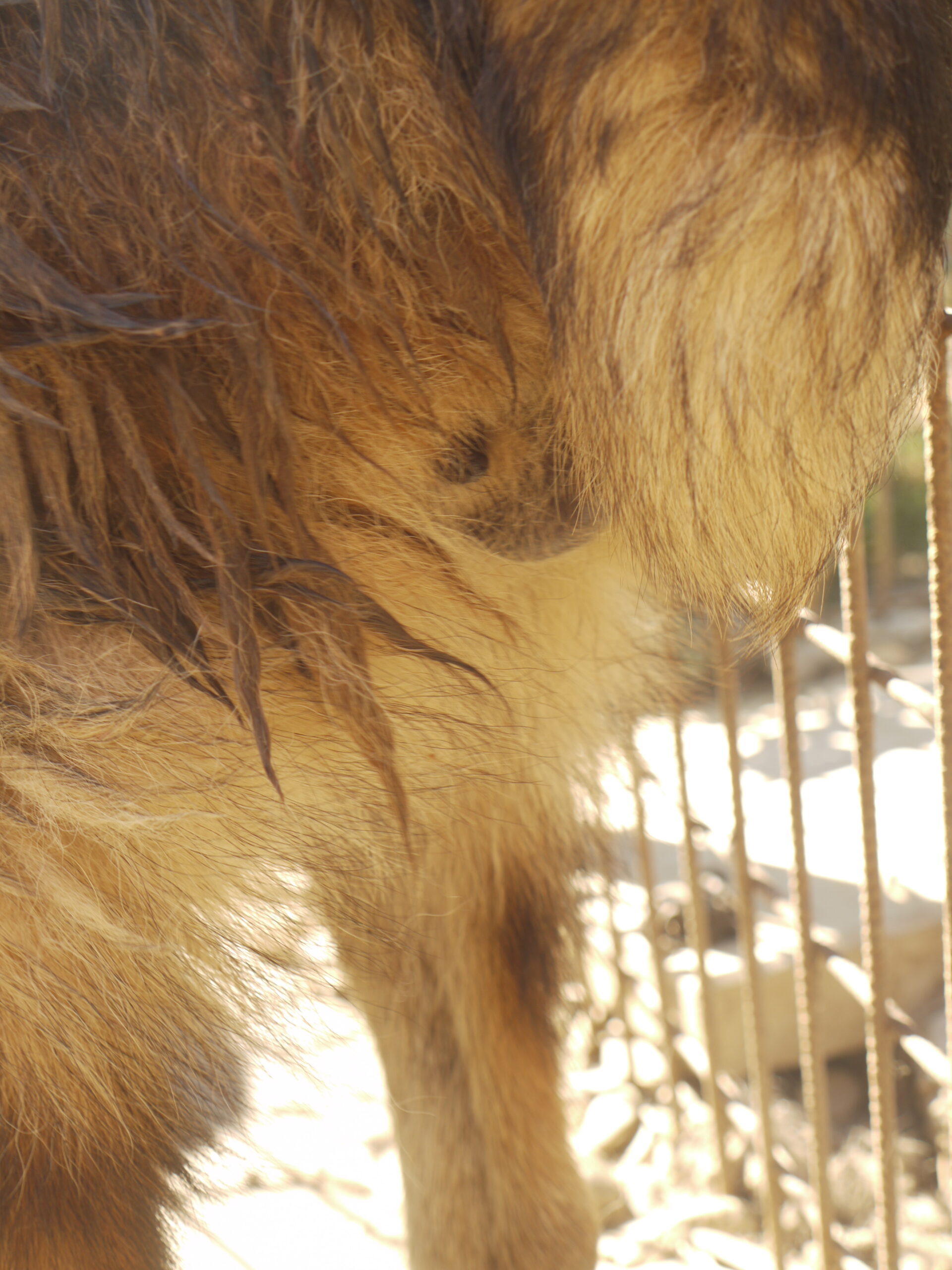 Sie hat rechts hinten am Oberschenkel ein Geschwulst, die dringend in Deutschland untersucht werden sollte.