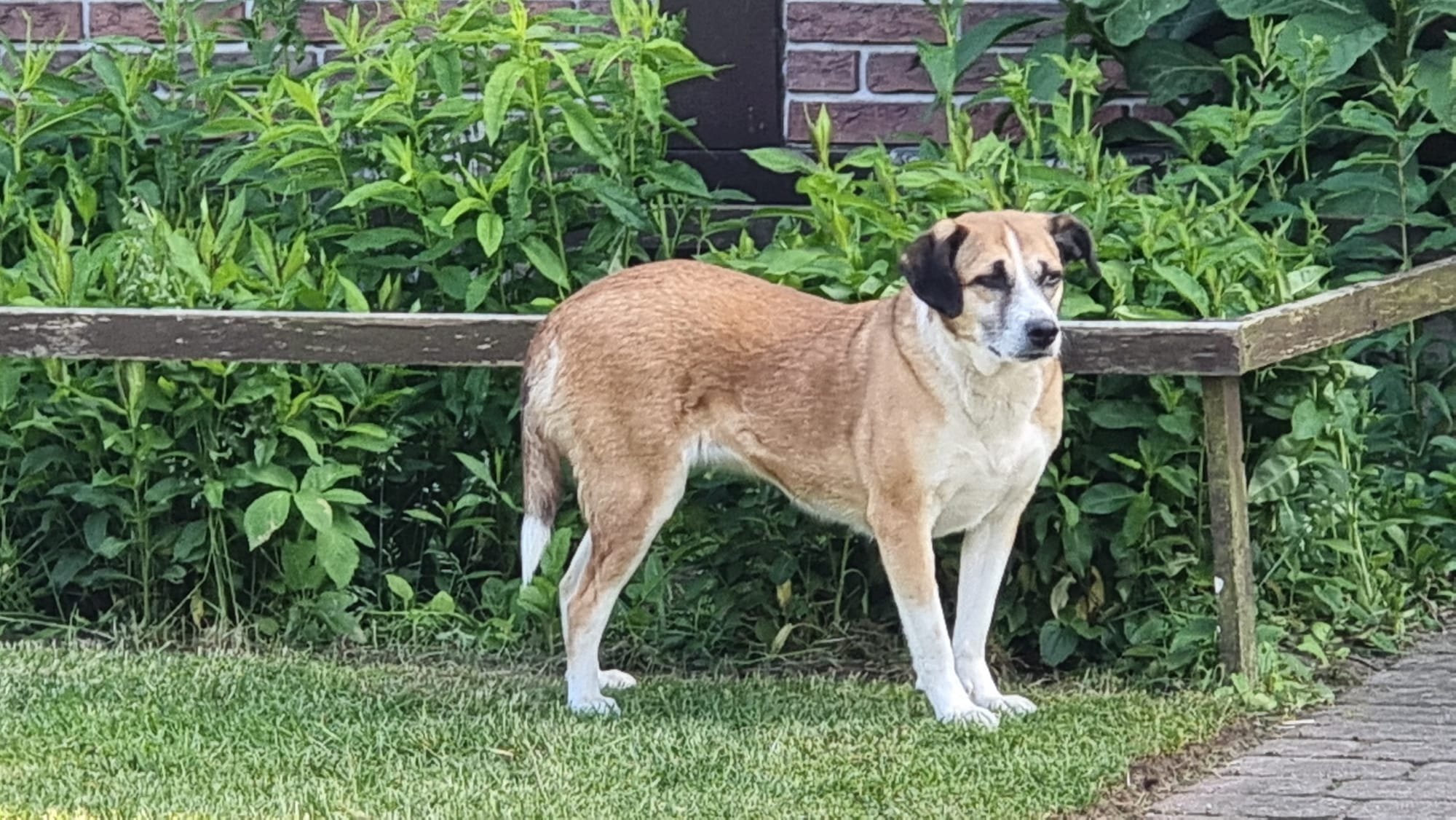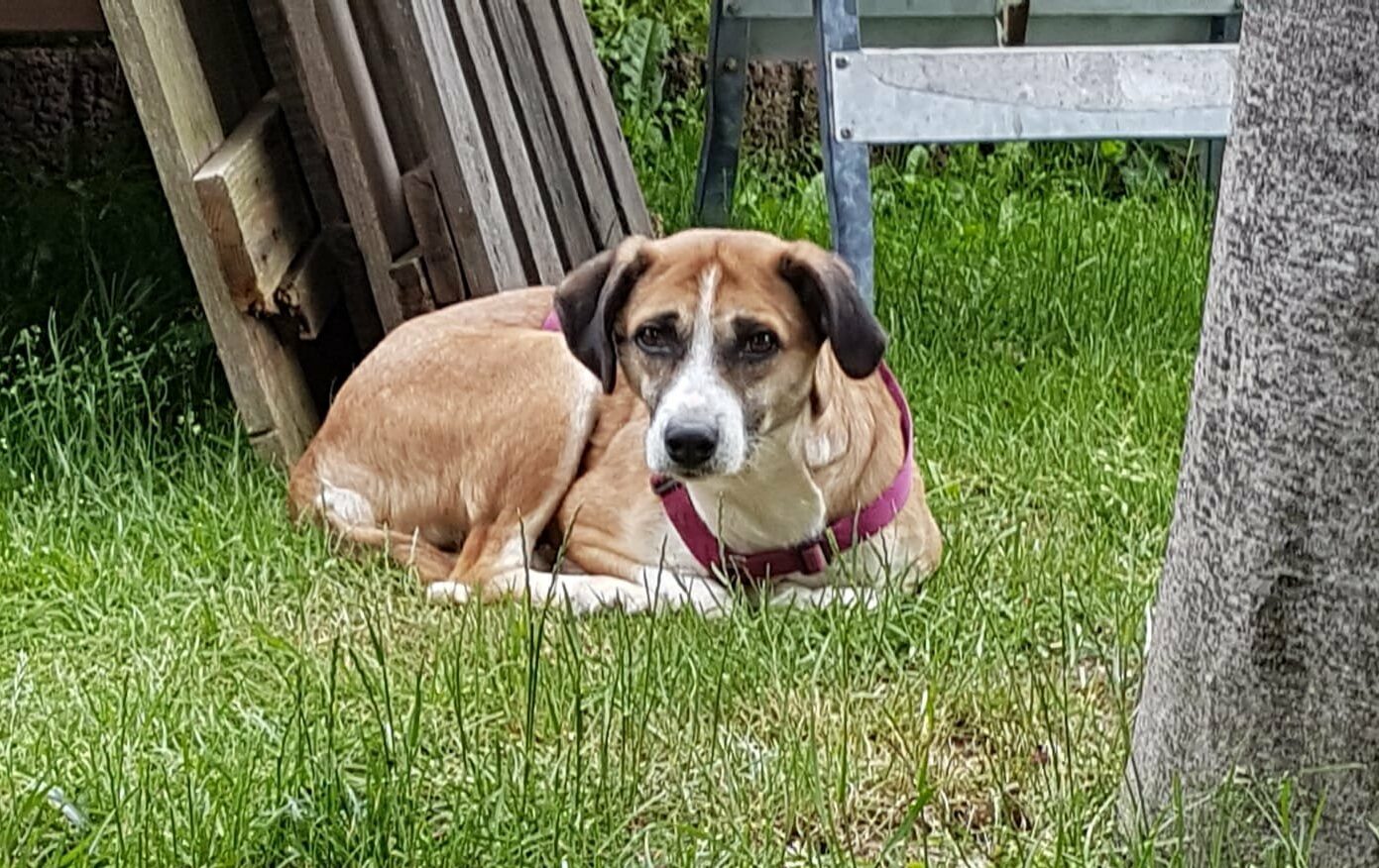 Frenzi sucht ein neues Zuhause, da ihr Herrchen unheilbar erkrankt ist und in ein Hospiz umgezogen ist.