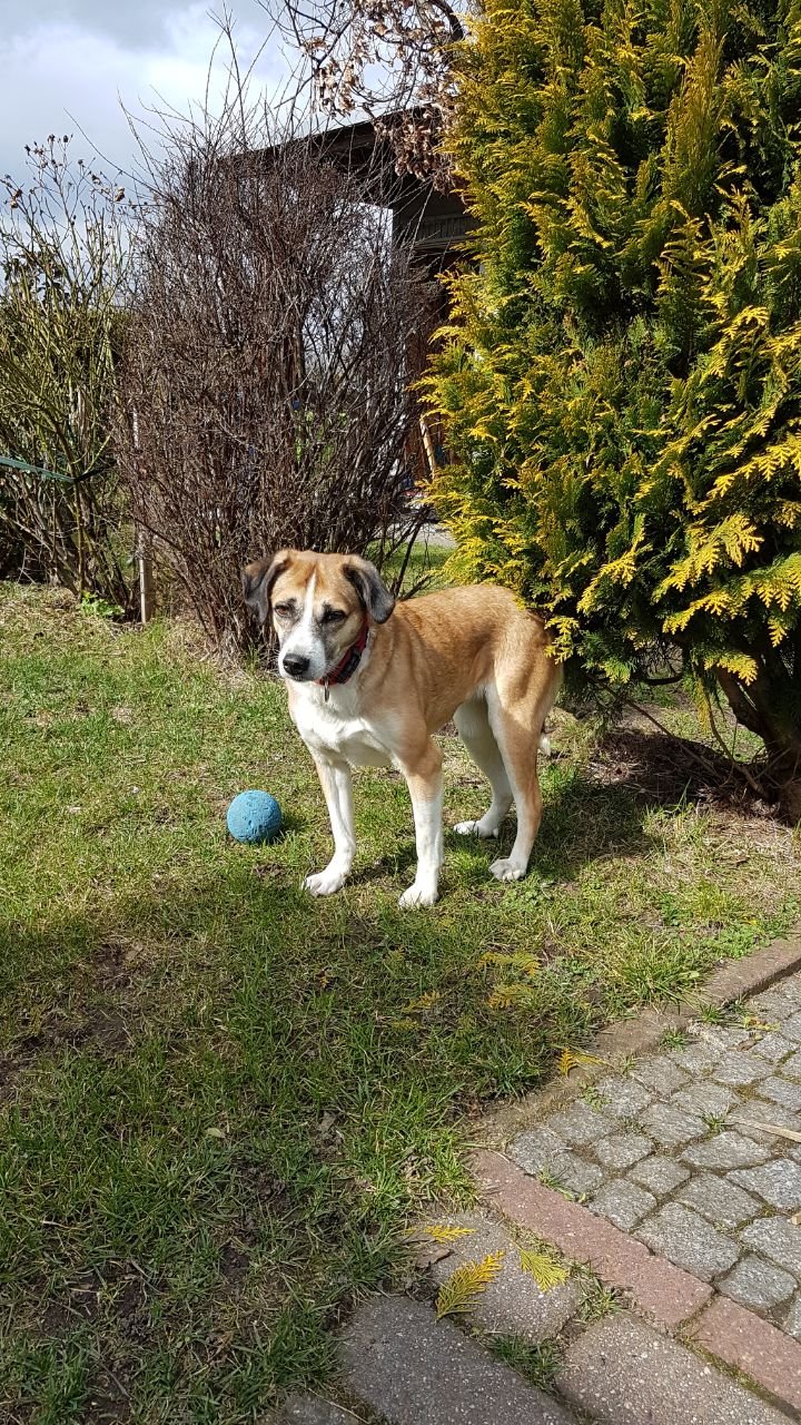 Die Sympathie anderen Hunden gegenüber ist weder von Größe, Alter oder Geschlecht abhängig. Auch hier würde sie sich eher ruhig zurückziehen, wenn es für sie zu stressig wäre. Sie kennt Enten und Pferde (nebenan ist eine Koppel), beides ist für sie eher uninteressant, schon ein kurzes strengeres Murren macht sie abrufbar.