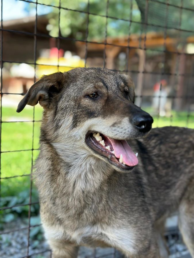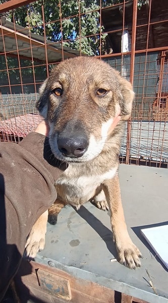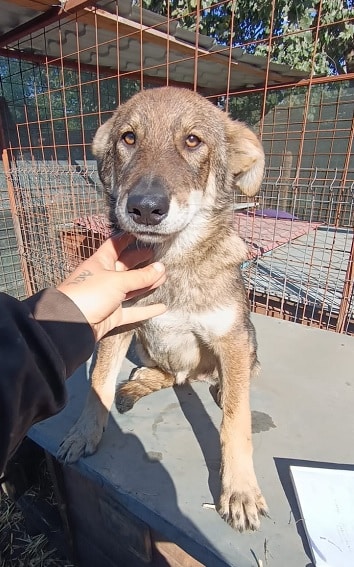 Fria ist sehr neugierig und freundlich. Leckerchen nimmt sie aus der Hand. Sie ist seit Welpenalter an im Shelter und leider macht sich nun auch der fehlende Menschenkontakt bei ihr bemerkbar. Mittlerweile ist sie nicht mehr so gut anfassbar. Nur wenn man sich etwas Zeit nimmt und länger im Zwinger steht, kann man sie in der Hütte meistens dann auch mal ein bisschen am Kopf streicheln. Dabei zeigt sie auch kein Abwehrverhalten. Mit ein bisschen Zeit und Geduld wird das bestimmt, aber es wäre gut, wenn sie das Shelter bald verlassen könnte. Von den 4 Geschwistern (Waiter, Phylax und Nela) ist sie die Schüchternste.