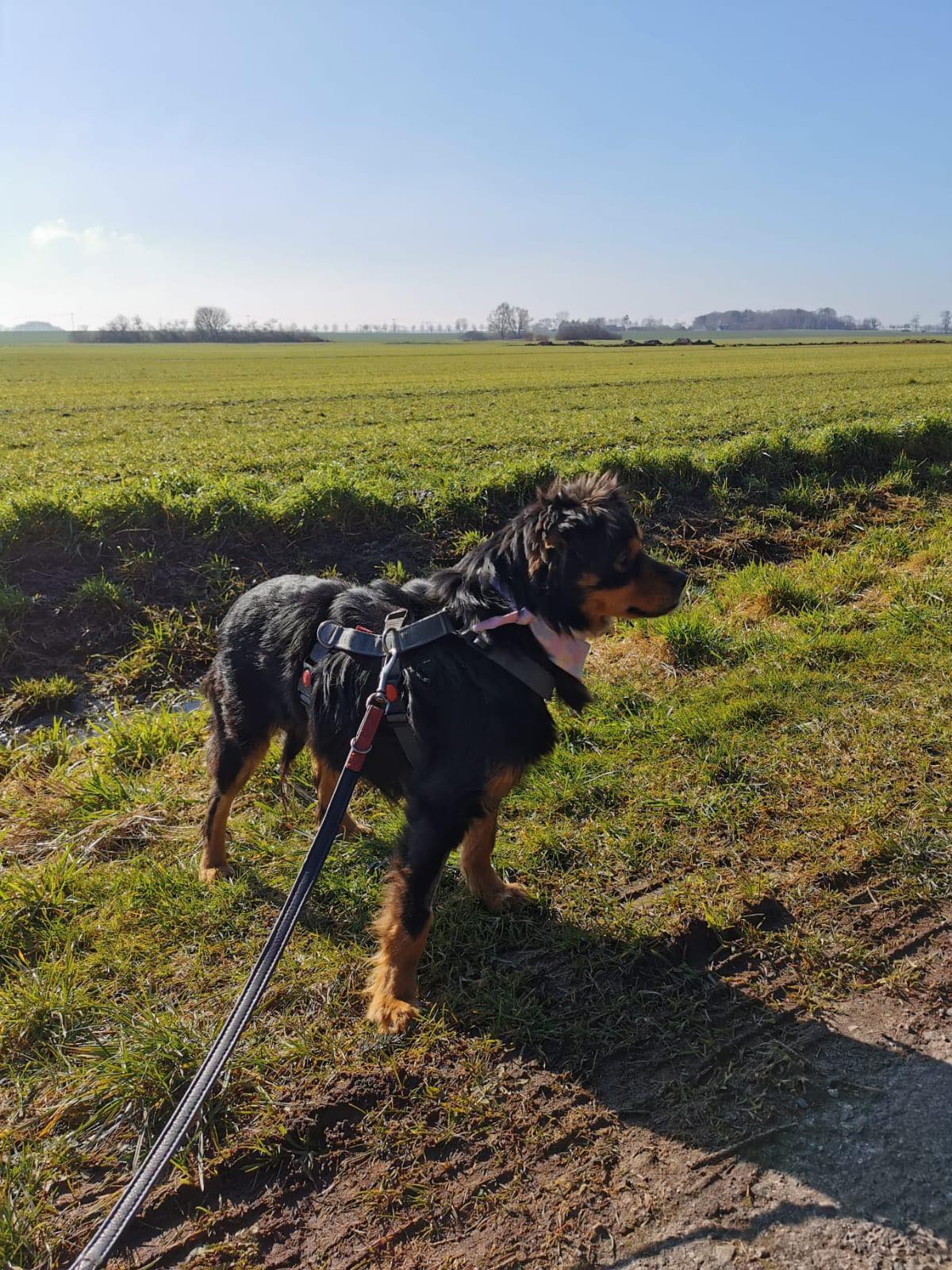 Unsere vorsichtige Frida hatte das Glück, dass sie mit dem Februar-Transport zu uns reisen durfte. Anfänglich war Frida sehr beeindruckt und wollte sich lieber in Luft auflösen.