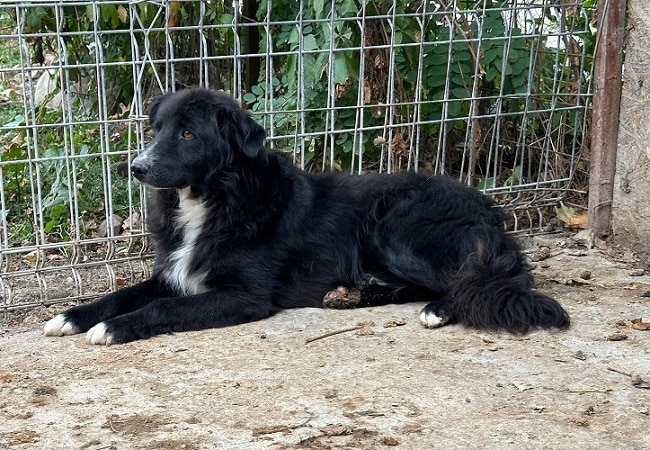 Update 10/23: Frido blieb während unseres Besuchs lieber im Hintergrund und beobachtete. Die Hundegruppe war auch sehr unruhig, besonders weil ein Hund dort den Ton angibt. Wir bedrängten daher Frido nicht weiter. Damit er nicht richtig scheu wird, sollte er sehr zeitnah ausreisen. Er ist sehr verträglich.