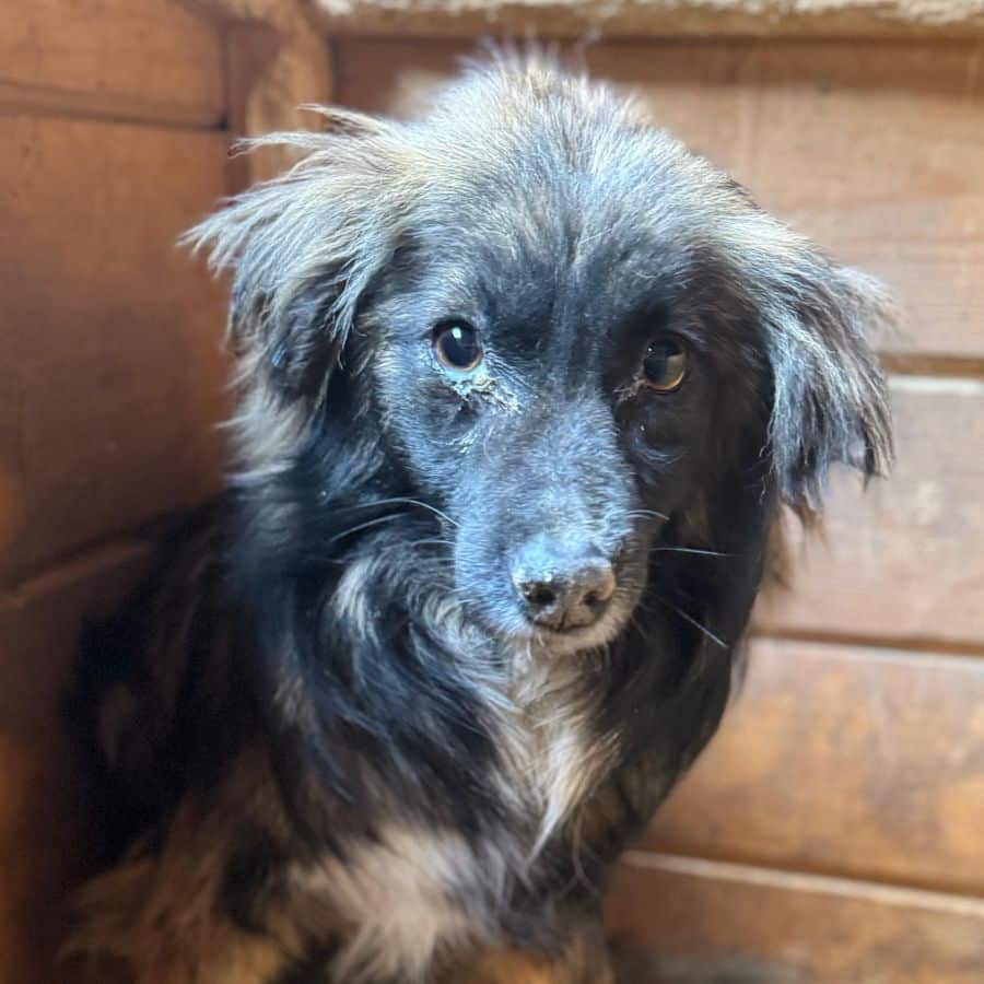Langhaarfell verfilzt, Entzündetes rechtes Auge (Stand 04/25)