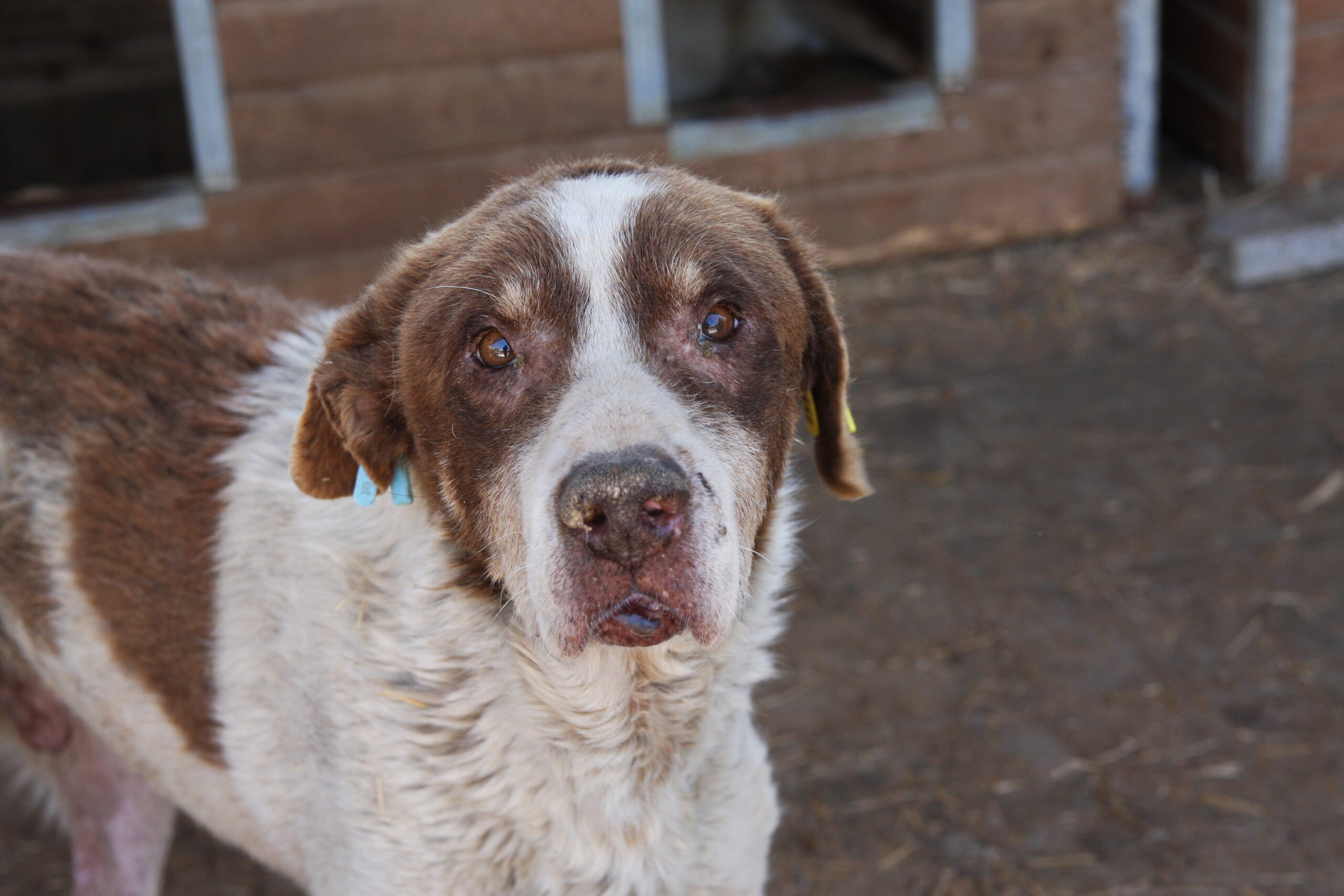 FRIEDRICH hat bestimmt schon einiges im Leben mitgemacht, sein Fell ist ganz zerzaust und dreckig, er hat kaum noch Zähne und an den Beinen hat er kleine offene Stellen.
