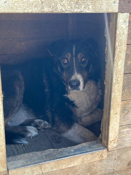 Der süße FRODO hat sich leider unsicherer entwickelt. Als wir vor dem Kennel standen, beobachtete er uns, als wir rein kamen versteckte er sich in der Hütte und beobachtet von dort aus weiter. In einem Zuhause wird er einige Zeit benötigen um sich wohl zu fühlen.