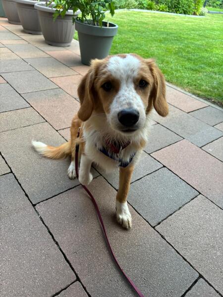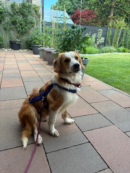 Frolic ist seit Ende Juni 2025 auf seiner Pflegestelle und kommt Tag für Tag immer mehr an.