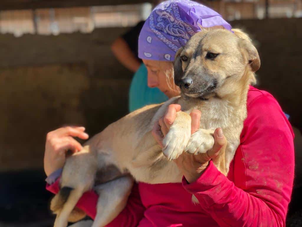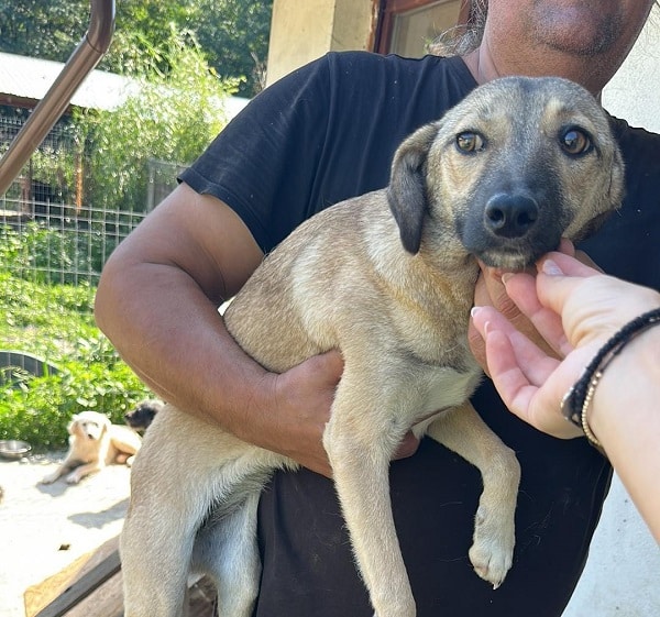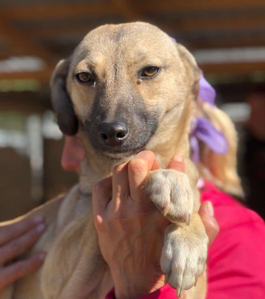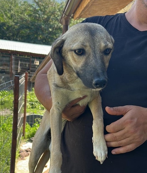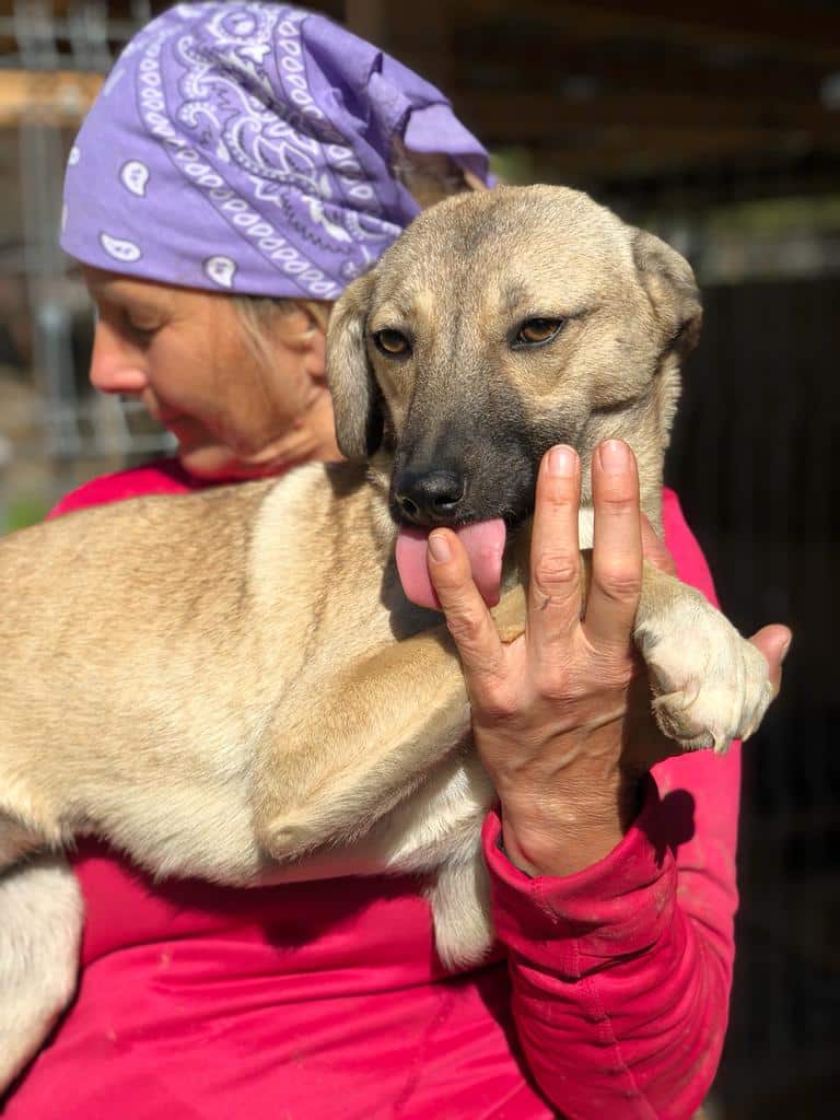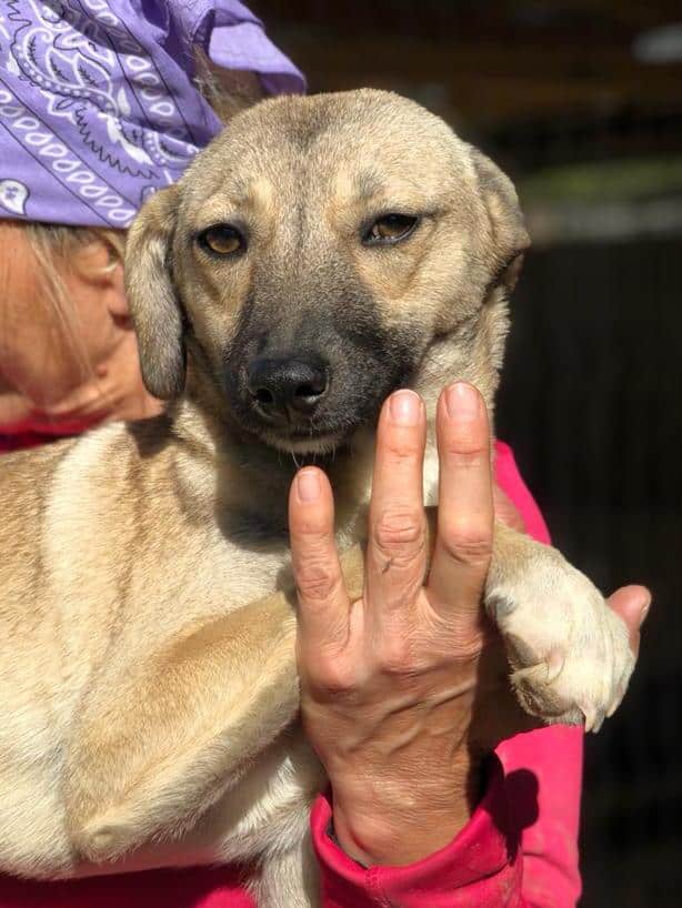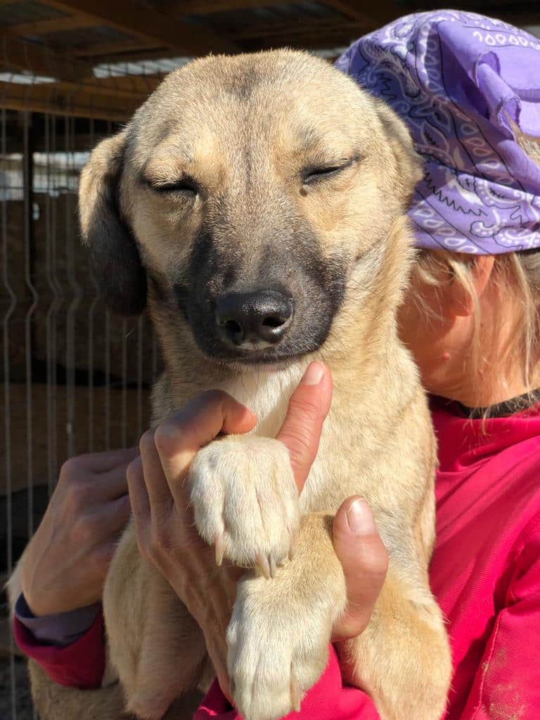 Update 10/23: Sehr zarte, kleine Mischlingshündin, die es auf dem Arm genossen hat. Zwischendurch schloss sie die Augen oder leckte uns ganz entspannt die Finger. Eine wunderbare, sehr zutrauliche und verträgliche Hündin. Hoffentlich muss sie hier nicht zu lange ihr Dasein fristen, weil sie dafür viel zu zart ist.