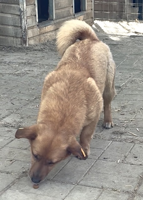 FUMIKO – eine freundliche Hündin, die mit Abstand die Kleinste in ihrem Kennel ist. FUMIKO war sehr an uns interessiert und wirkte offen und neugierig. Leider nahm sie die Leckerlie nicht aus unserer Hand, aber was soll sie auch machen, wenn sich die anderen Hunde immer dazwischen drängeln? Sie hatte schon ihre Mühe, die Leckerli vom Boden aufzusammeln, weil die Anderen oft schneller waren als sie. FUMIKO ist eine wirklich süße kleine Hündin, die in einem erfahrenen Zuhause vermutlich schnell zutraulicher werden würde.