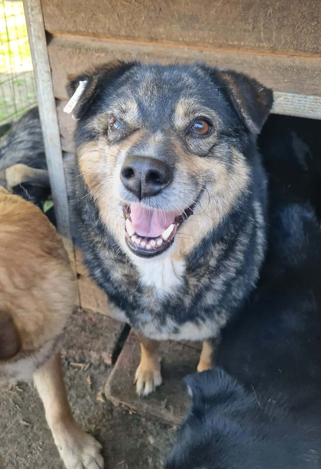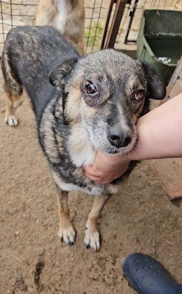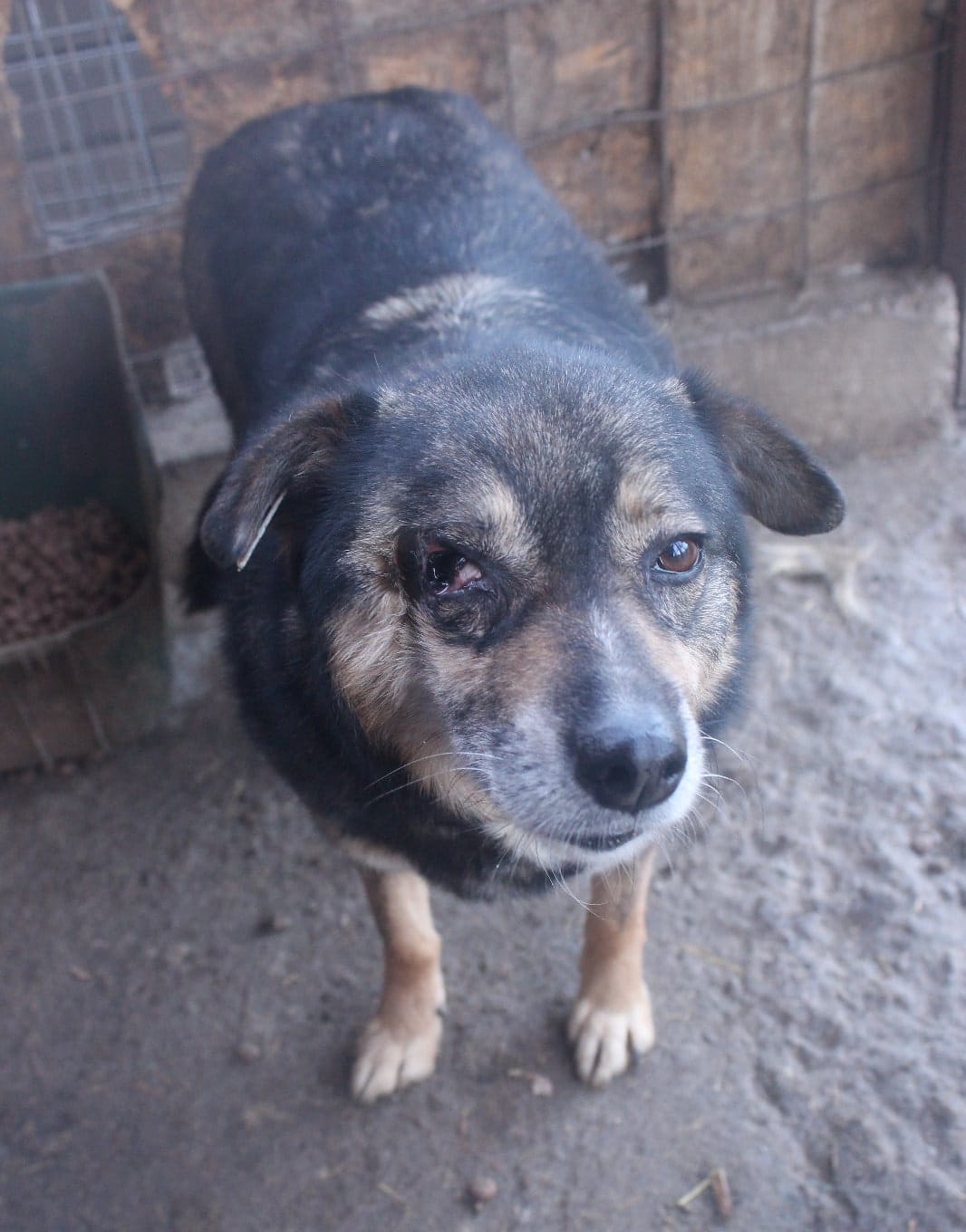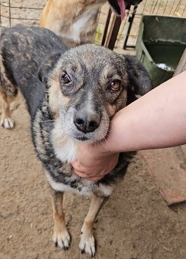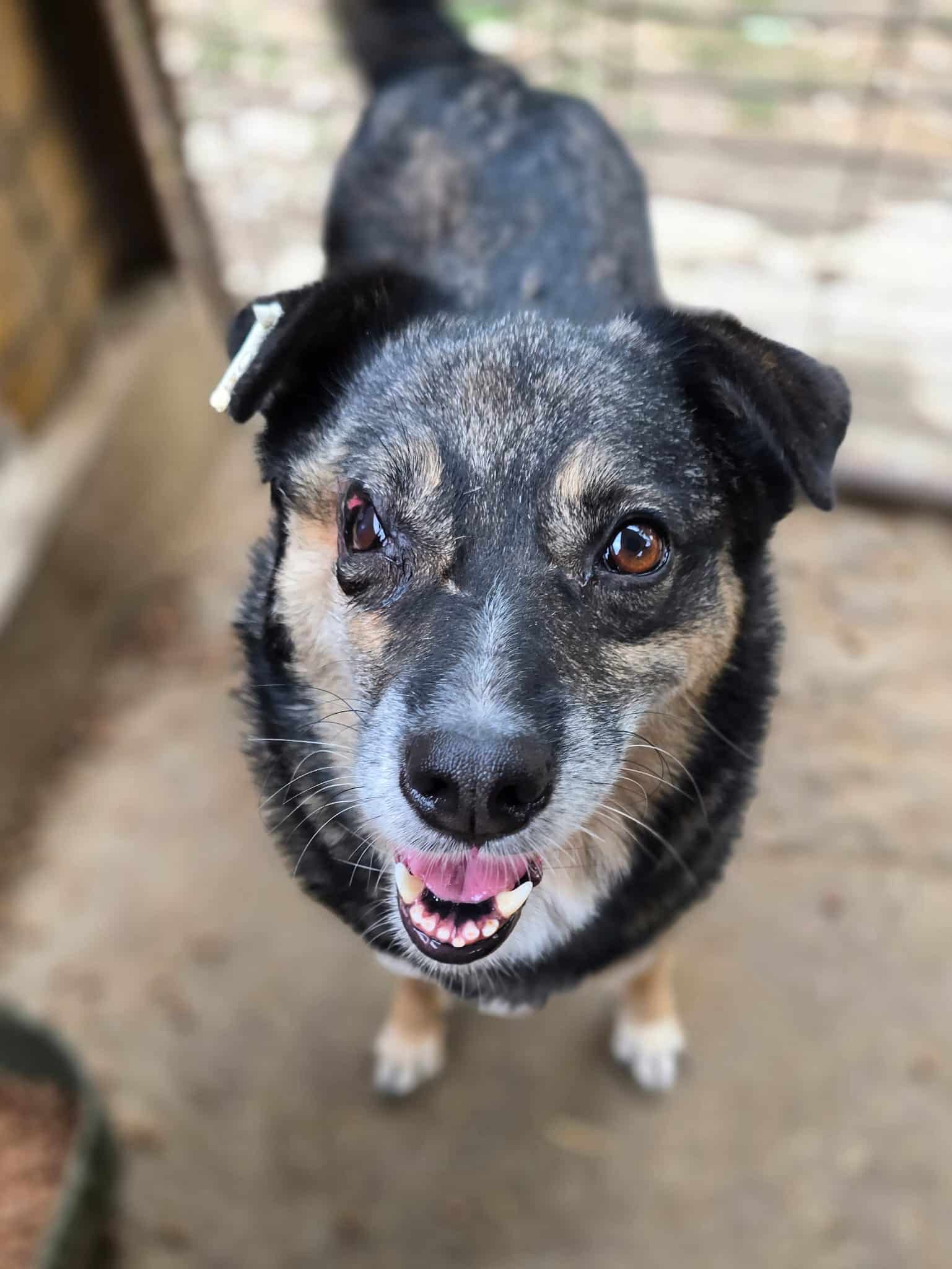 Ach FUNNY… Omi mit Handicap, wann wird sie endlich gesehen? Das kaputte Auge, was ihr vermutlich Schmerzen bereitet, denn sie kratzte ständig mit ihrer Pfote daran, die Junghunde, die sie einfach überrempeln, denen sie aber dann faire Ansagen macht, ohne böse zu werden, und der Shelteralltag stressen sie sehr. Und doch ist sie eine so tolle, menschenbezogene Hündin, die unseren Besuch wieder genoß. Für die Streicheleinheiten kletterte sie zu uns aufs Hüttendach und konnte dort unsere Aufmerksamkeit ganz ungeteilt genießen. Als wir den Kennel verließen, fing FUNNY wieder an zu fiepsen und weinte uns nach. Das war auch der Grund, warum wir überhaupt noch einmal zu ihr rein gingen, ihr Weinen war schon von außen wahrzunehmen. Wer kann der Omi endlich ein freies Körbchen und die benötigte Ruhe und Geborgenheit geben, die sie verdient hat und sich so sehr wünscht.