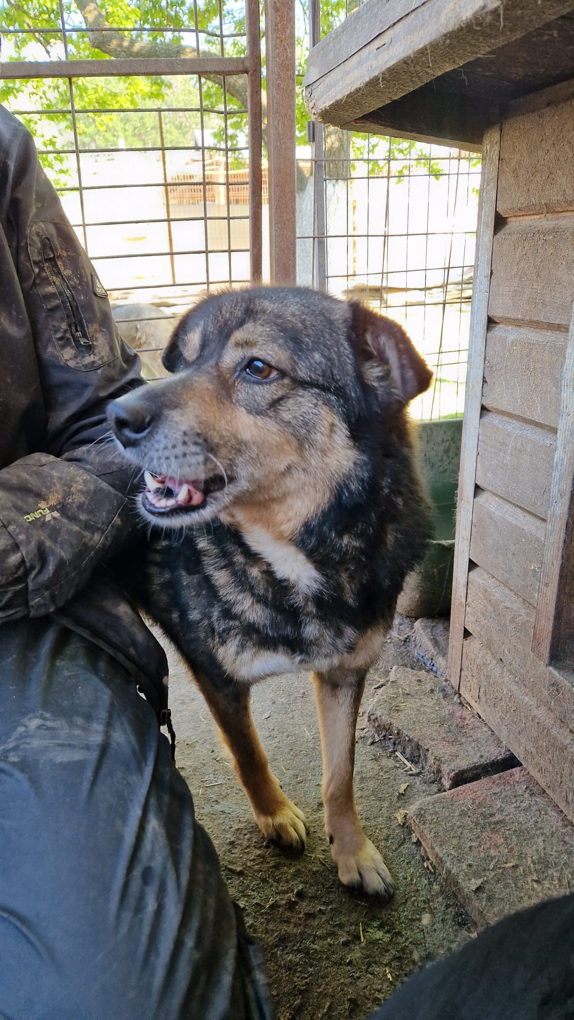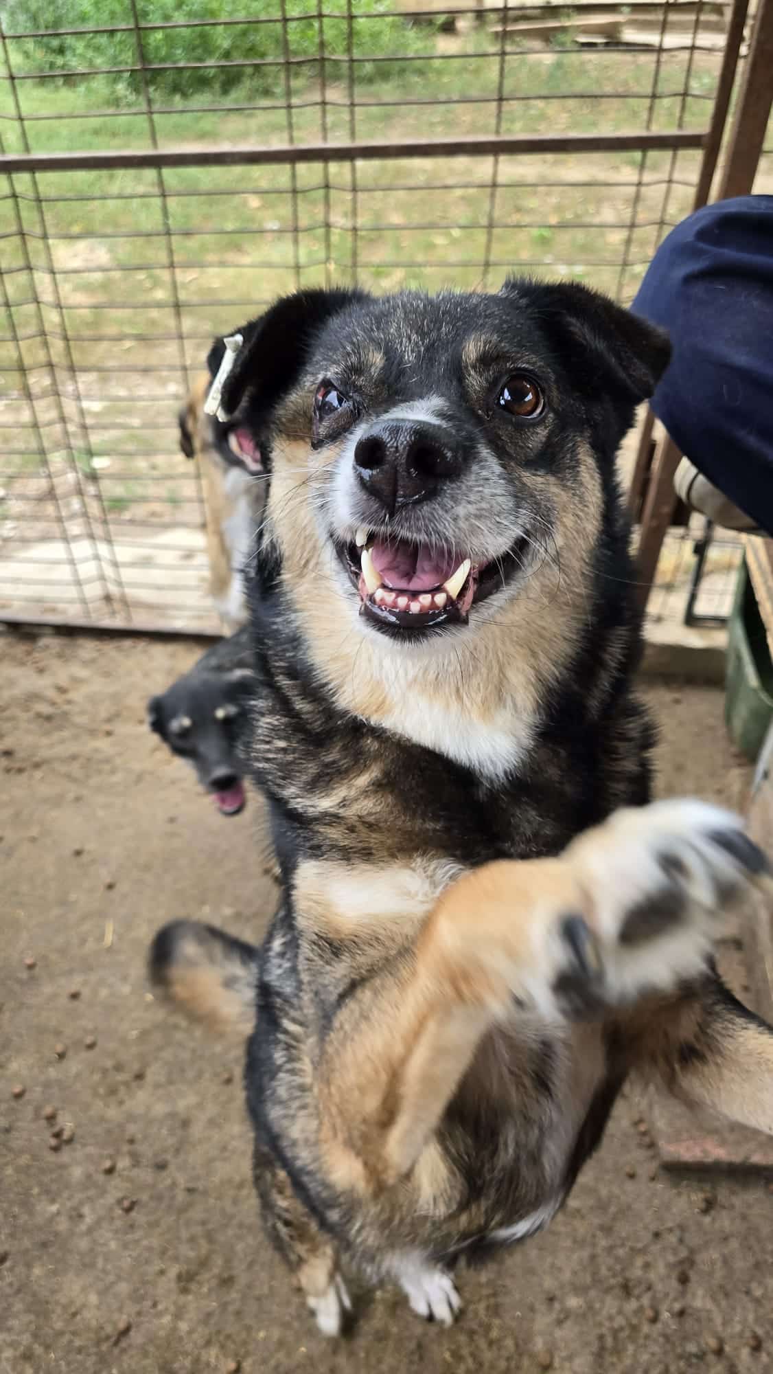 Die ältere FUNNY ist mit mehreren Junghunden in einem Kennel untergebracht, wahrscheinlich zu ihrem eigenen Schutz. Leider ist sie von den vielen lebhaften Hunden aber sehr gestresst und hätte gerne einfach ihre Ruhe. Sie nahm Leckerlies aus der Hand und wir konnten sie vorsichtig anfassen, da sie aber so gestresst wirkte, haben wir sie nicht weiter bedrängt.