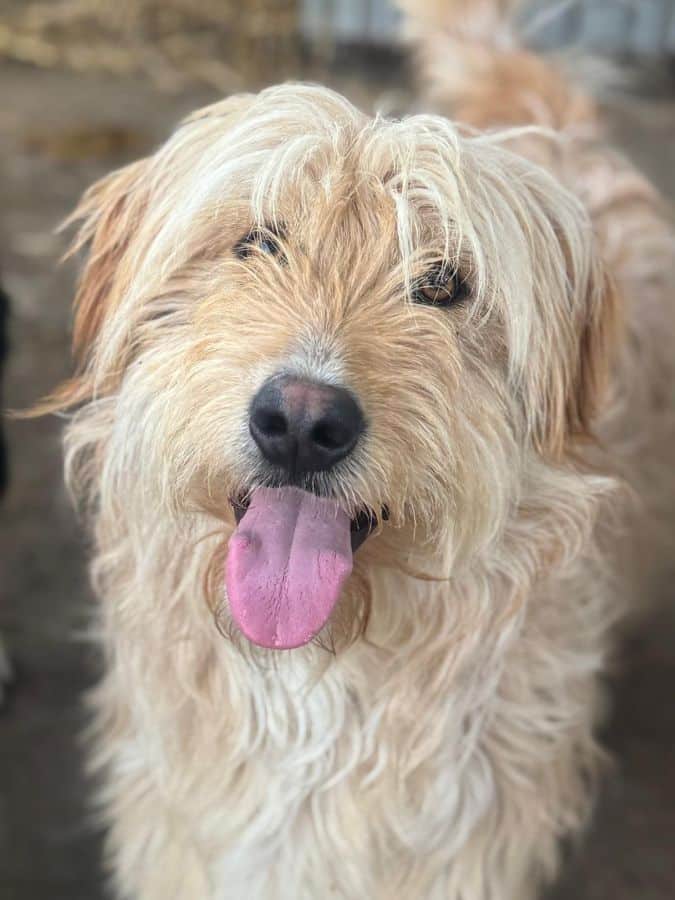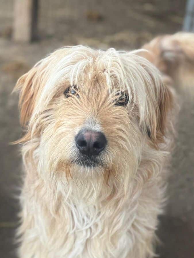 FUZZI ist ein echter Traum in creme-beige. Mit seinem wuscheligen Fell ist er nicht nur ein absoluter Hingucker, sondern vom Charakter her auch ein Herzenshund durch und durch. Offen und freundlich geht er auf uns Menschen zu, er lässt sich überall gern anfassen und genießt jede Streicheleinheit. Mit seinen Artgenossen versteht er sich gut – er lebt gemeinsam mit einem weiteren Rüden und einer Hündin gemeinsam in einem Shelter. FUZZI ist neugierig, aufmerksam und bereit, die Welt gemeinsam mit seinem Menschen zu entdecken. Wer ihn an seiner Seite hat, gewinnt bestimmt einen treuen Begleiter.