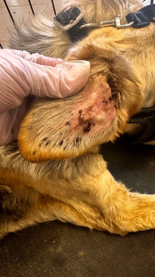 GAIJON lebt seit sieben Jahren im Shelter. Als scheuer und zurückhaltender Hund hatte er bisher kaum Vermittlungschancen und war einer der ersten Hunde, die ins Open Shelter umziehen durften. Nun wurde er ins Vethouse gebracht, stark abgemagert, sehr geschwächt und übersät mit Zecken. Trotz seines Zustands zeigt er sich kooperativ und ließ sich sogar anfassen.