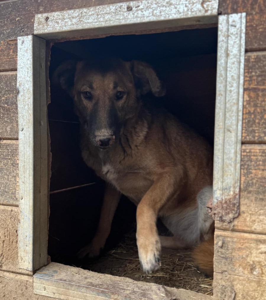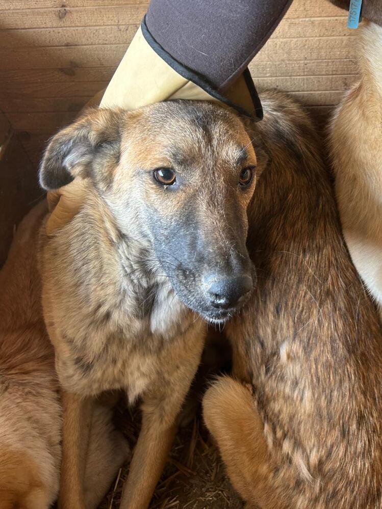 Leider ist sie scheu geworden und huschte von Hütte zu Hütte während wir im Kennel waren. In der Hütte konnten wir sie unter Bedrängung vorsichtig anfassen und den Chip auslesen.