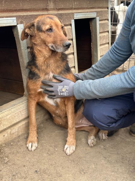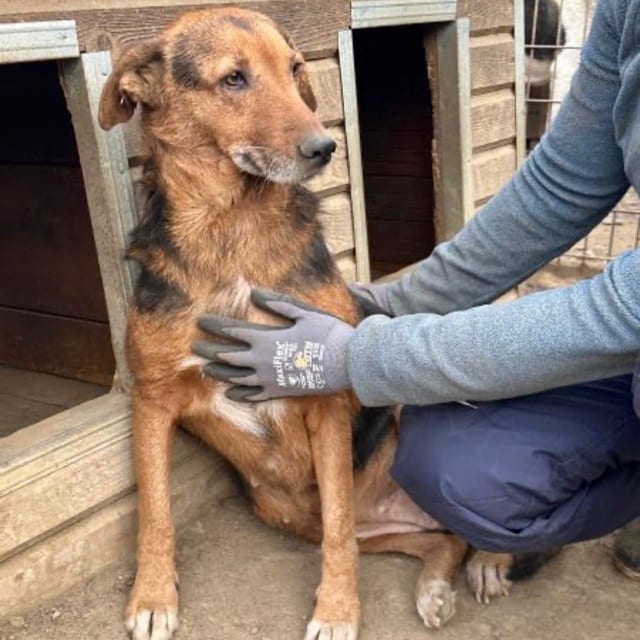 GANDHI schaute uns mit resigniertem Blick an, als wir den Kennel betraten. Sie scheint sich aufgegeben zu haben und wirkt müde. Sie blieb einfach in unserer Nähe liegen, und als sie an der Reihe war, ließ sie sich problemlos streicheln. Die angebotenen Leckerchen nahm sie aus der Hand. Für GANDHI wird es höchste Zeit, in ein ruhiges Zuhause zu ziehen. Wer gibt der sanften Hündin das lang ersehnte Ausreiseticket?