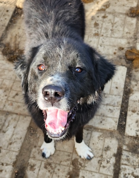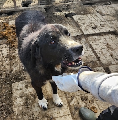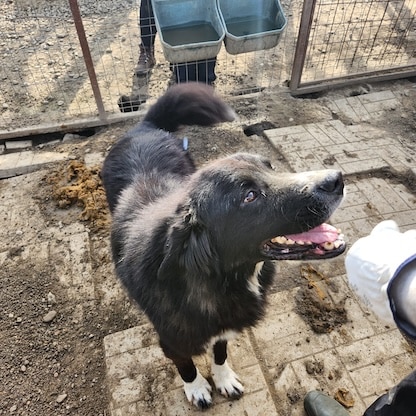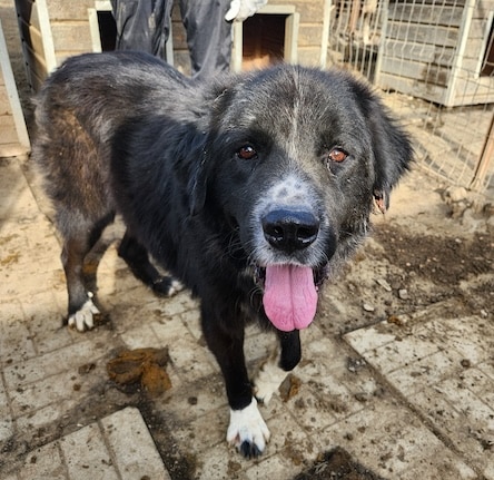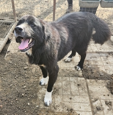 Der beeindruckende HSH-Mix Garry zeigte sich mit dem Rüden in seinem Kennel verträglich, mit einem Hund im Nachbarskennel pflegte er eine klare Kommunikation. Uns Menschen war Garry sehr zugetan und freundlich, ließ sich gerne die Brust kraulen und mit Leckereien verwöhnen. Auffallend war sein unrundes Gangbild, Garry scheint beim Laufen Schmerzen zu haben, deren Ursache abgeklärt werden sollte.