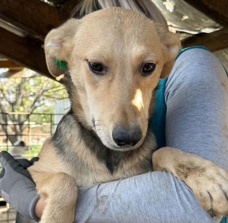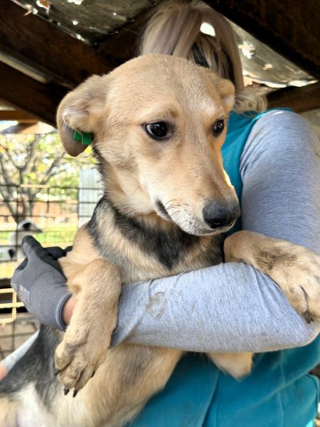 Die süße Gela ist im Erstkontakt unsicher, taut dann er schnell auf und ist neugierig uns gegenüber. Sie lässt sich gut auf den Arm nehmen, auch wenn es ihr ungewohnt ist. Sie sitzt in einem sehr quirligen Junghundkennel und kommt dort gut zurecht.