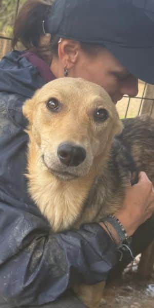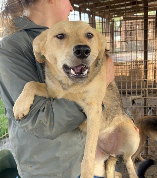 In ihrem viel zu kleinen Junghund Zwinger geht die ganz sanfte GELA total unter. Anfangs lag sie nur in der Hütte, doch mit der Zeit und wenn man auf sie zugeht taute GELA nach und nach auf. Schließlich kam sie von selbst, suchte Nähe und zeigte sich plötzlich ganz anhänglich und verschmust.