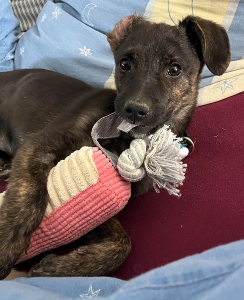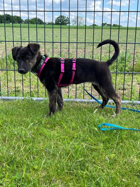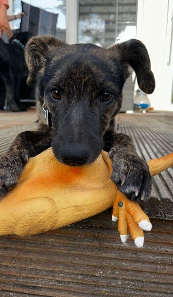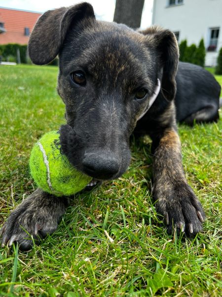 Ich lebe hier aktuell noch mit weiteren Vierbeiner zusammen und ich spiele so gern mit ihnen. Lieb‘ hab ich die gewonnen und vertrage mich mit jedem, egal ob groß oder klein.