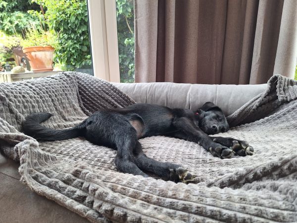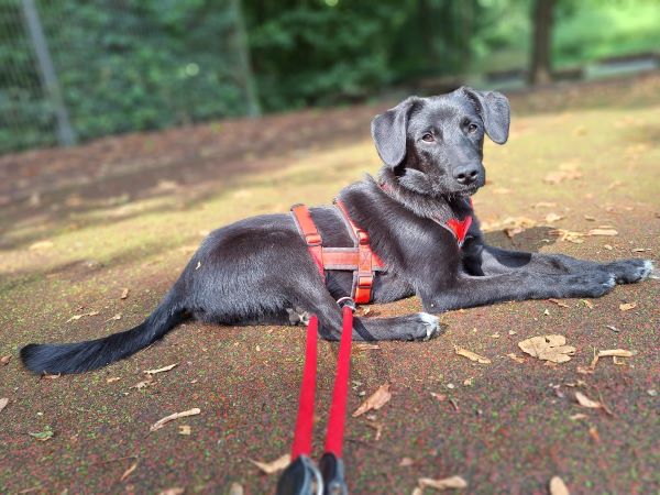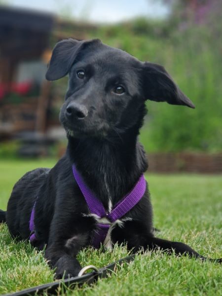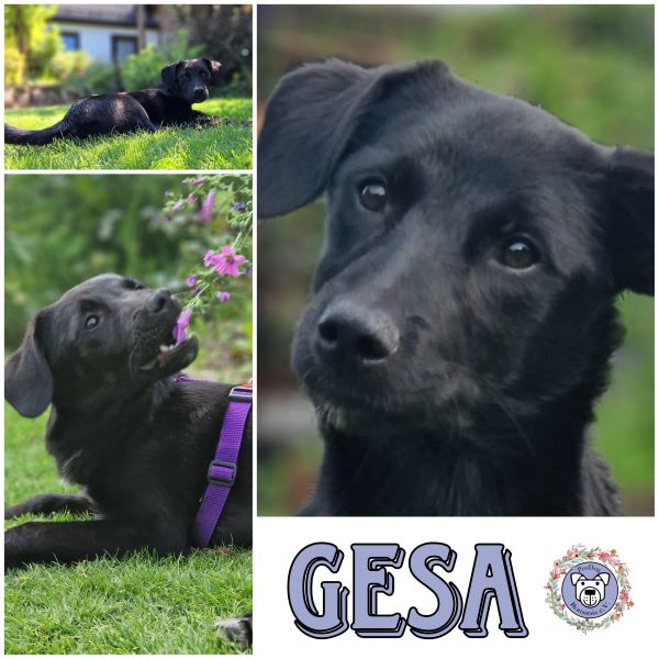 Der süsse schwarze Zwerg kam mit einer Erkältung und einer grösseren kahlen Hautstelle, ganz schüchtern in Deutschland an. Auf der Heimfahrt war von ihr weder etwas zu sehen, noch zu hören. Zuhause angekommen überzeugte GESA nach wenigen Minuten mit einer umwerfenden Herzlichkeit und einem riesigen Schmusebedürfnis. Das scheint ihre Lebenseinstellung zu sein … sie setzt sich hin und lässt ihr kleines Herz aus ihren Augen strahlen. Man hat keine Chance zu entkommen. Genauso konsequent tobt sie mit dem gesamten Rudel durch den Garten .. da ist nix mehr, mit zartem Hundekind .. sie lässt sich in keinster Weise die „Butter vom Brot klauen“. GESA findet Spaziergänge toll und ist gerne vorne weg. Kommt aber genauso gerne als erste wieder nach Hause um dann liebend gerne, ganz in Ruhe „stundenlang“ jede Blume, jeden Schmetterling zu beobachten. GESA liebt das gemeinsame Spiel mit den anderen Hunden, aber ein Mensch für sie allein, der ihr die Möglichkeit zu genügend Hundekontakten bietet – es geniesst stundenlang mit ihr zu kuscheln und vor allem genauso gerne in der Natur ist wie das kleine Fräulein, würde GESAs Augen sicher noch mehr strahlen lassen – wenn es ein von Herzen kommendes lebenslanges Versprechen ist Bei Interesse meldet euch gerne unter folgendem Kontakt.
