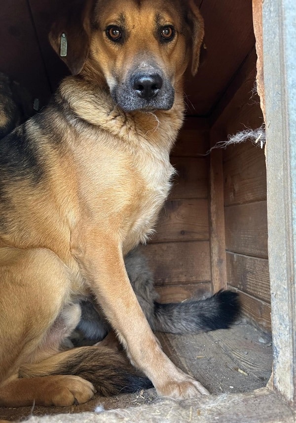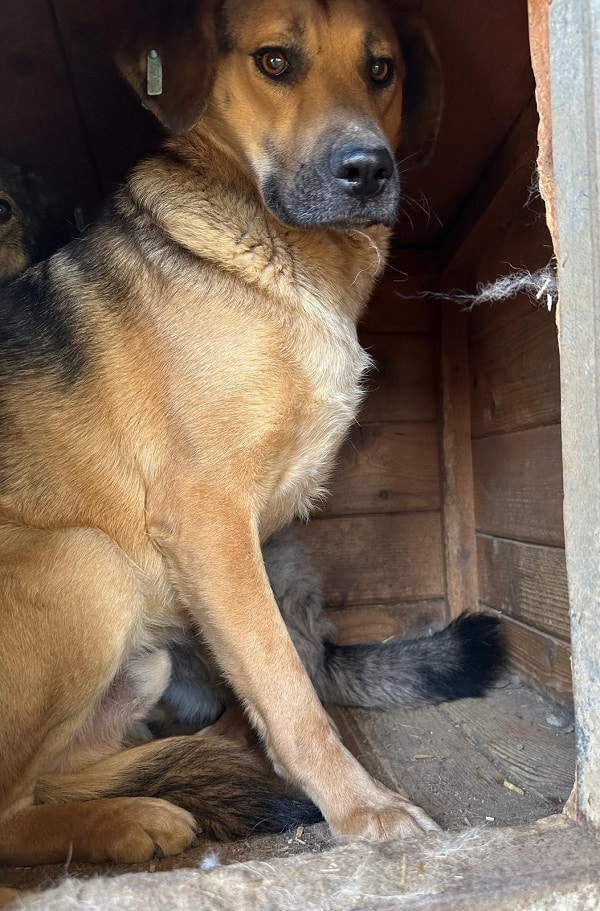 Den hübschen GIBSON haben wir in der Hütte gefunden, wo er abgestumpft und gleichgültig lag. Aus Angst vor uns würden wir nicht sagen, denn er hat sich problemlos in der Hütte streicheln lassen, sondern eher resigniert über seine Lage oder er ist erst neu in der Gruppe. Freiwillig hätte er seine Hütte nicht verlassen, so das wir mal den Deckel öffneten, um seine ganze Statur zu sehen. Er ist noch jung, er sollte eine Perspektive für sein Leben bekommen, Menschen die für ihn da sind und ihm das Leben zeigen.