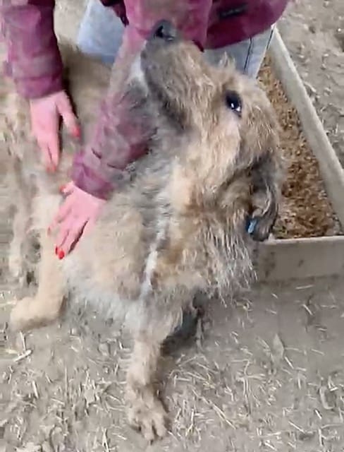 Unser zuckersüßer und super aufgeschlossener GIMMLI konnte sein Glück über unseren Besuch kaum fassen. Viel zu selten kommt er in den Genuss von Streicheleinheiten, Leckerlie und Aufmerksamkeit. GIMMLI sog jede Berührung förmlich auf, verteilte liebevoll Küsschen und sprang fröhlich um uns herum. Es tat uns im Herzen weh, diesen so menschenbezogenen Rüden in seinem Kennel zurückzulassen. Wir wünschen uns sehr, dass GIMMLI endlich von seiner Famie gesehen wird, nachdem er nun schon 2 lange Jahre im tristen Shelter ausharren musste. In seinem gemischten Rudel zeigte GIMMLI sich durchgehend verträglich.