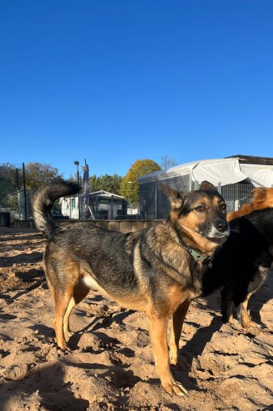 Sie begleitet ihre Pflegestelle mit zur Arbeit in einer Hundetagesstätte und läuft hier auch gut in einer großen Hundegruppe mit. Ein ruhiger, souveräner Ersthund wäre für Gina kein Thema – aber wir können sie uns auch gut als Einzelhund vorstellen.