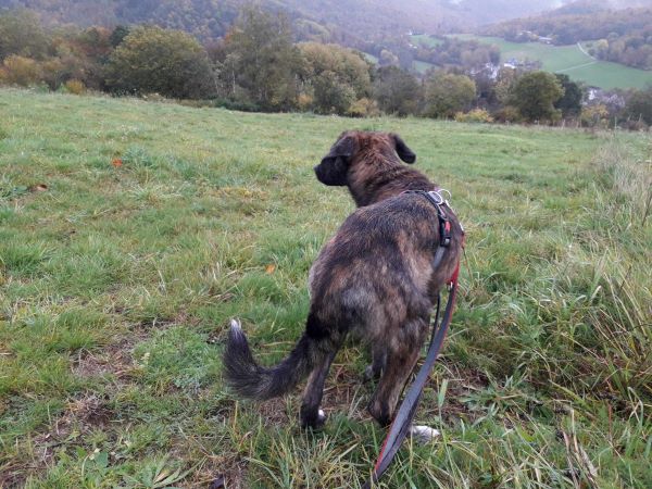 Gina ist gerne Zuhause und bleibt mit meinen Hunden schon 2-3 Stunden „alleine“. Spaziergänge bis zu einer Stunde macht sie gut mit. Sie schnüffelt und lernt langsam die Umgebung kennen. Auf dem Heimweg trabt Gina dann gerne flott vorneweg.