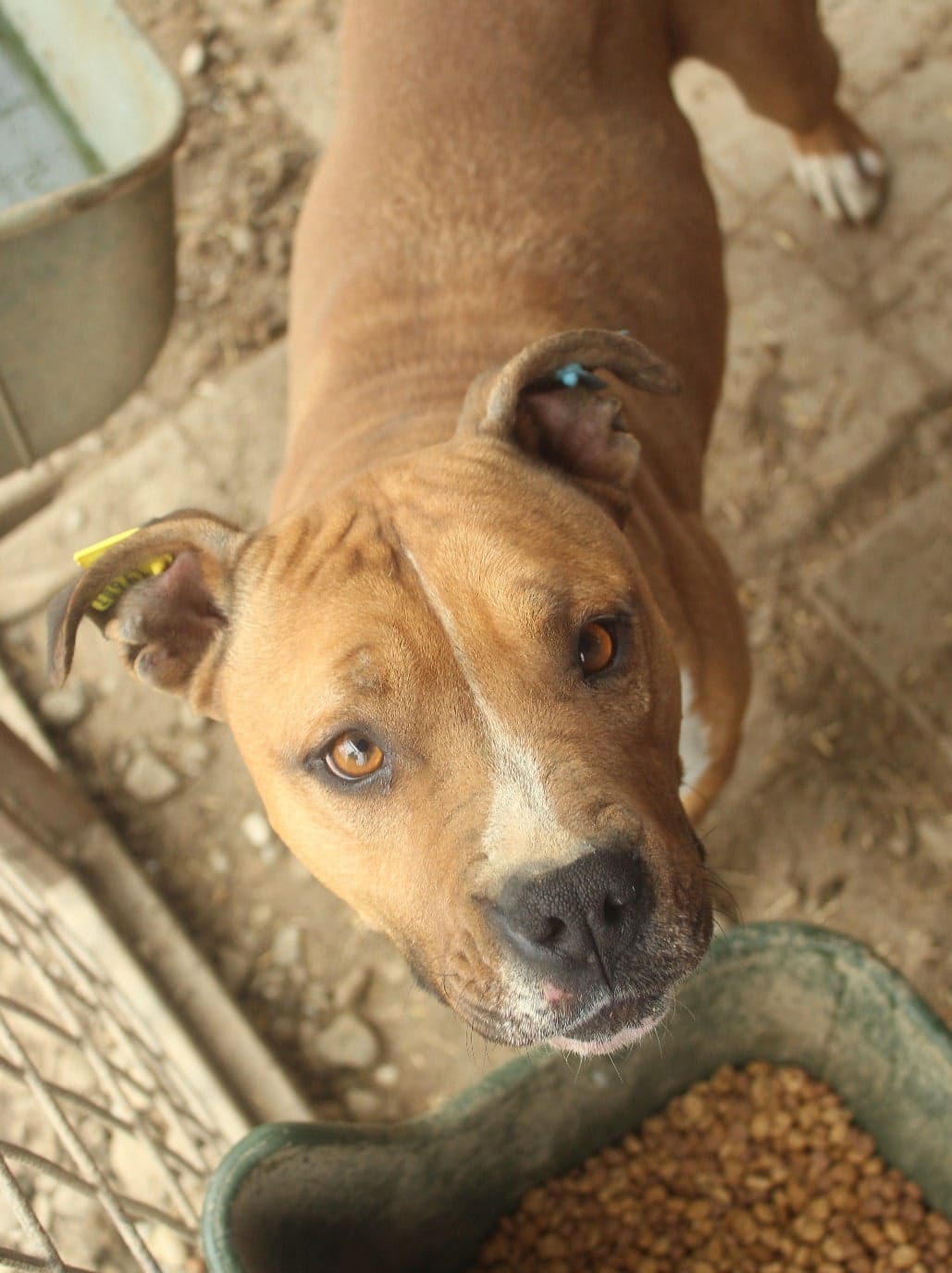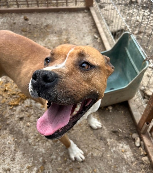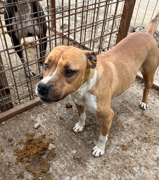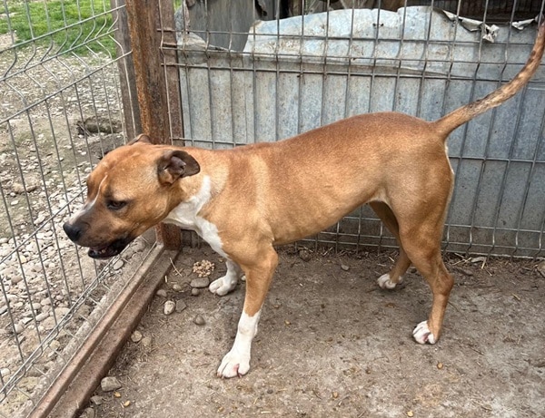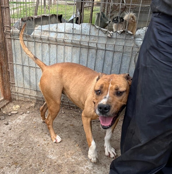 GINI ist eine junge Staff(mix)-Hündin, die Ende 2023 von ihrem Besitzer in Bucov abgegeben wurde. Da sie unverträglich mit anderen Hunden ist, sitzt sie leider alleine in einem kleinen Zwinger. Sie war außer sich vor Freude über unseren Besuch und zeigte sich sehr menschenbezogen und freundlich. GINI ist verschmust und wir konnten sie gut anfassen und streicheln. Sie ist agil, verspielt und teilweise etwas distanzlos, was man ihr aber kaum verdenken kann – schließlich hatte sie zuvor ein Zuhause und ist jetzt 24/7 allein im Zwinger. Für X suchen wir einen Einzelplatz, vorzugsweise bei rasseerfahrenen Menschen.