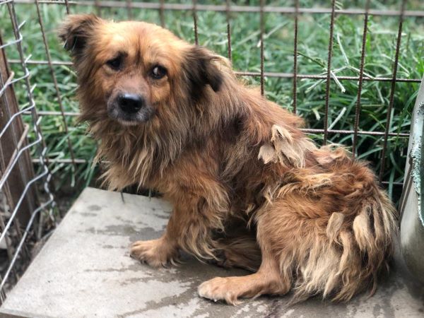 Dieser kleine Hundemann hätte nach dem Schoren und einigen Monaten später ein wunderschönes Fell. Aktuell sind es nur noch Fellklumpen. Die nasse, kalte Jahreszeit wird für ihn sehr schwer werden. Leider auch ein Zuhause zu finden, den auf Anfassen reagiert er mit deutlichem Abschnappverhalten. Er ist auch kein devoter Hund und wird sich behaupten können. Hier ist ausreichend Hundeerfahrung und eine gute Portion Durchhaltevermögen gefragt. In der Hundegruppe zeigte er sich grundsätzlich verträglich, aber war zumindest während unseres Besuchs eher immer mehr für sich alleine. Einzelzuhause wäre daher auch gut möglich und ggf. besser, sollten wir mit seinem Selbstbewusstsein richtig liegen.