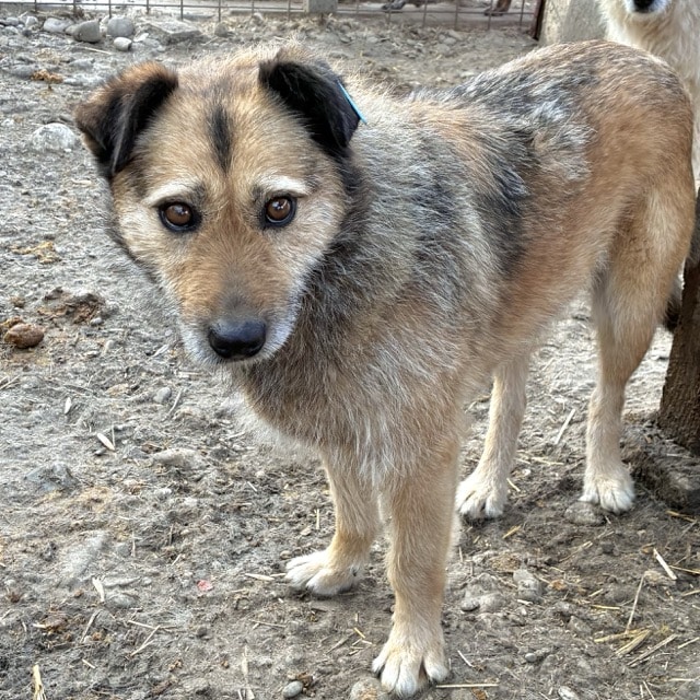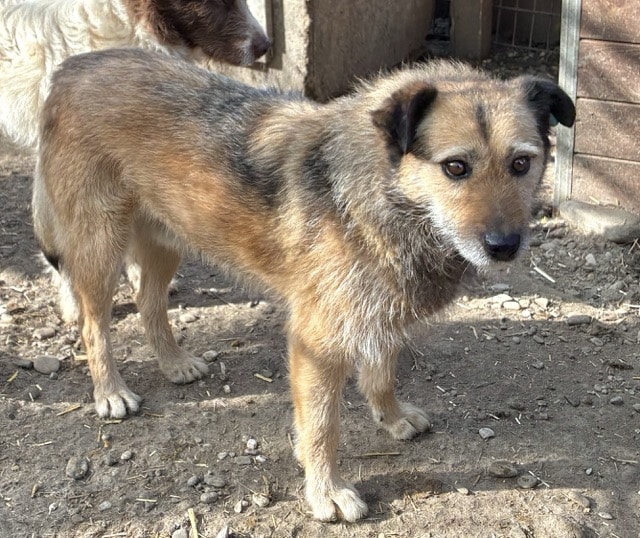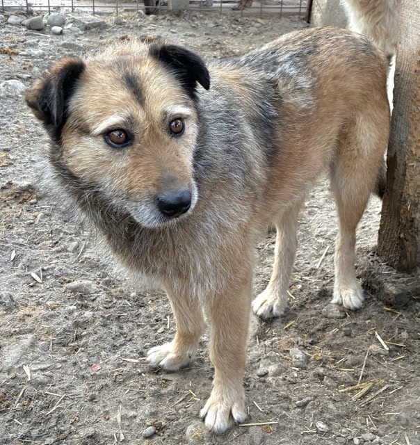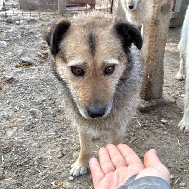 GINTARAS ist für uns etwas schwer einzuschätzen. Er hat entweder Probleme mit den Augen oder ein neurologisches Problem oder bei beides. Sein Verhalten ist generell recht seltsam. Er begegnete uns aber freundlich und holte sich gerne Leckerchen aus der Hand.