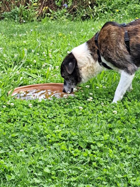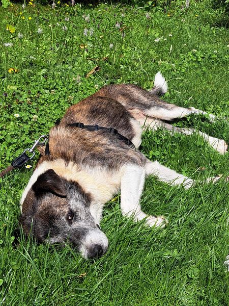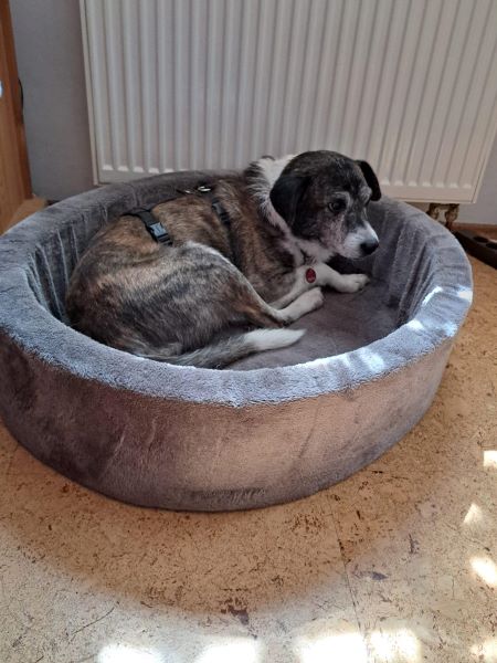 Ansonsten geht es unserem Opi für seine geschätzten 12 Jahre gut. Er ist noch flott unterwegs und 1-2 stündige Spaziergänge läuft er gerne und gut mit. Da sind nur die Hundebegegnungen schwierig. Da arbeiten wir dran. Aber auch der Garten und die bequemen Liegeplätze im Haus stehen hoch im Kurs.