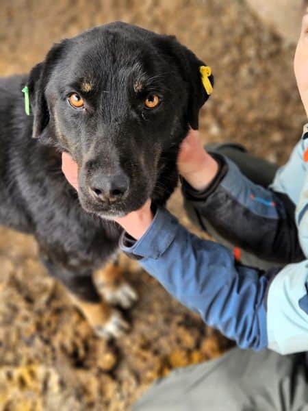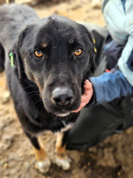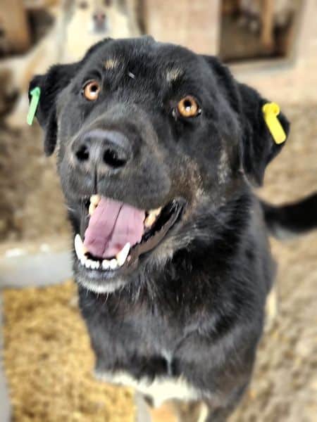 GIORDANO freute sich sehr als wir den Kennel betraten und kam sofort neugierig auf uns zu, voller Interesse und Offenheit. Gerne nahm er unsere Leckerlis aus der Hand. Er brauchte einen kurzen Moment, bis er merkte, dass wir es wirklich gut mit ihm meinen. Dann ließ er sich streicheln und fand unsere Aufmerksamkeit klasse. Man merkt ihm aber etwas an, dass er Streicheleinheiten noch nicht kennt. GIORDANO würde sich in einem Zuhause schnell wohlfühlen und den letzten Schritt des fehlenden Vertrauens schnell überwinden. Seine Seele sehnt sich nach einem sicheren Umfeld, in dem er endlich die Zuwendung bekommt, die er verdient. Mit den anderen Hunden war er verträglich.