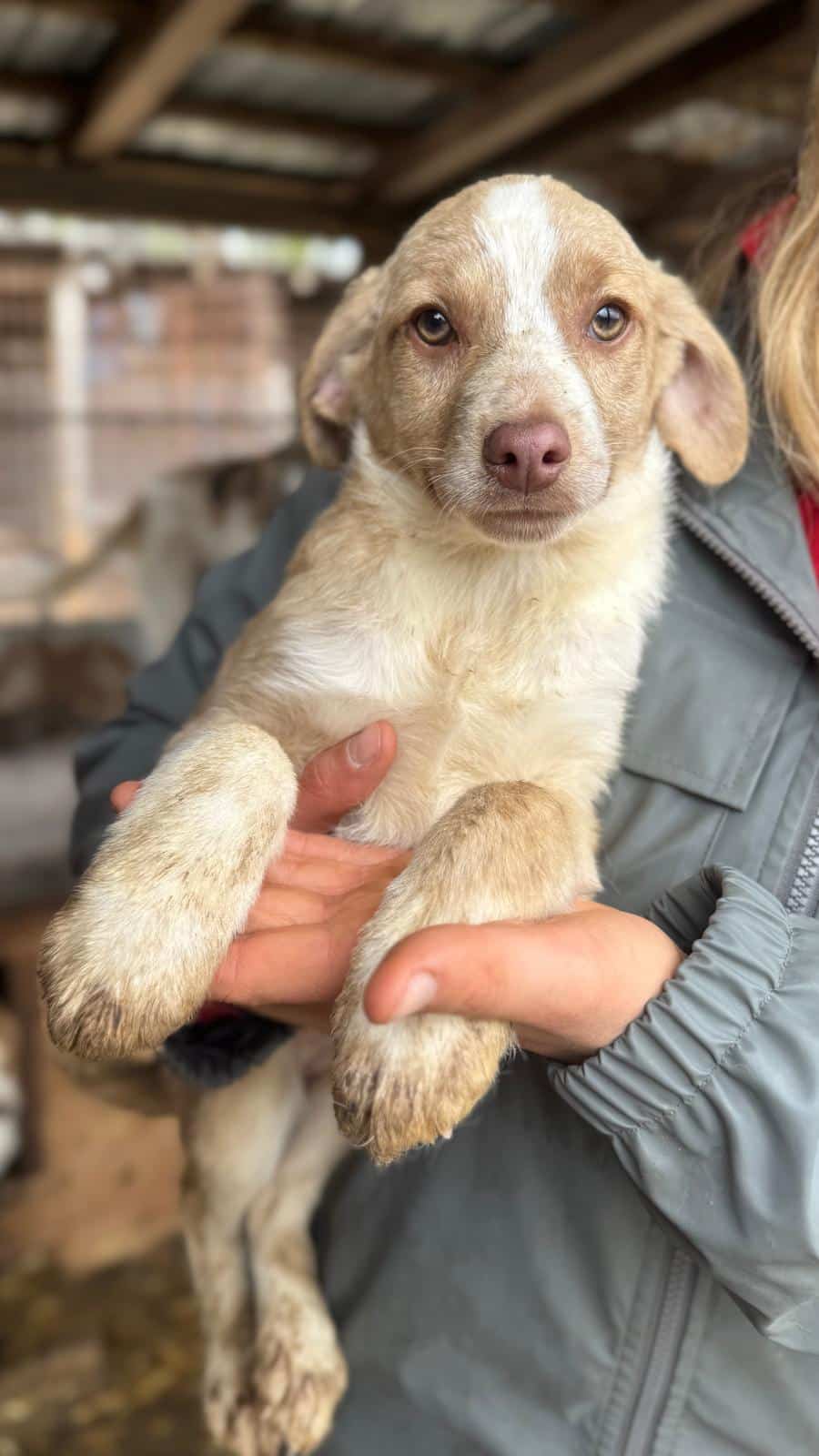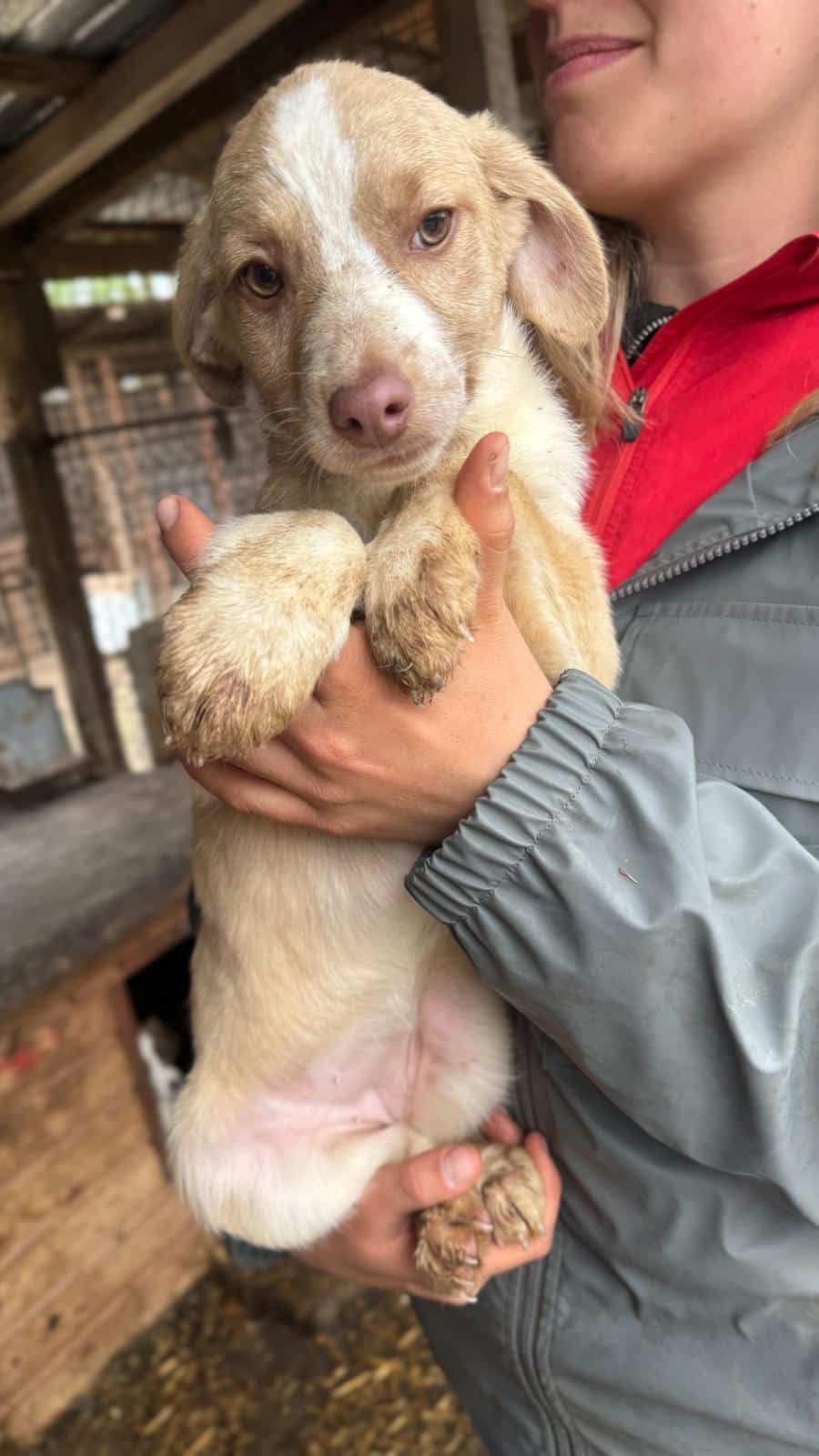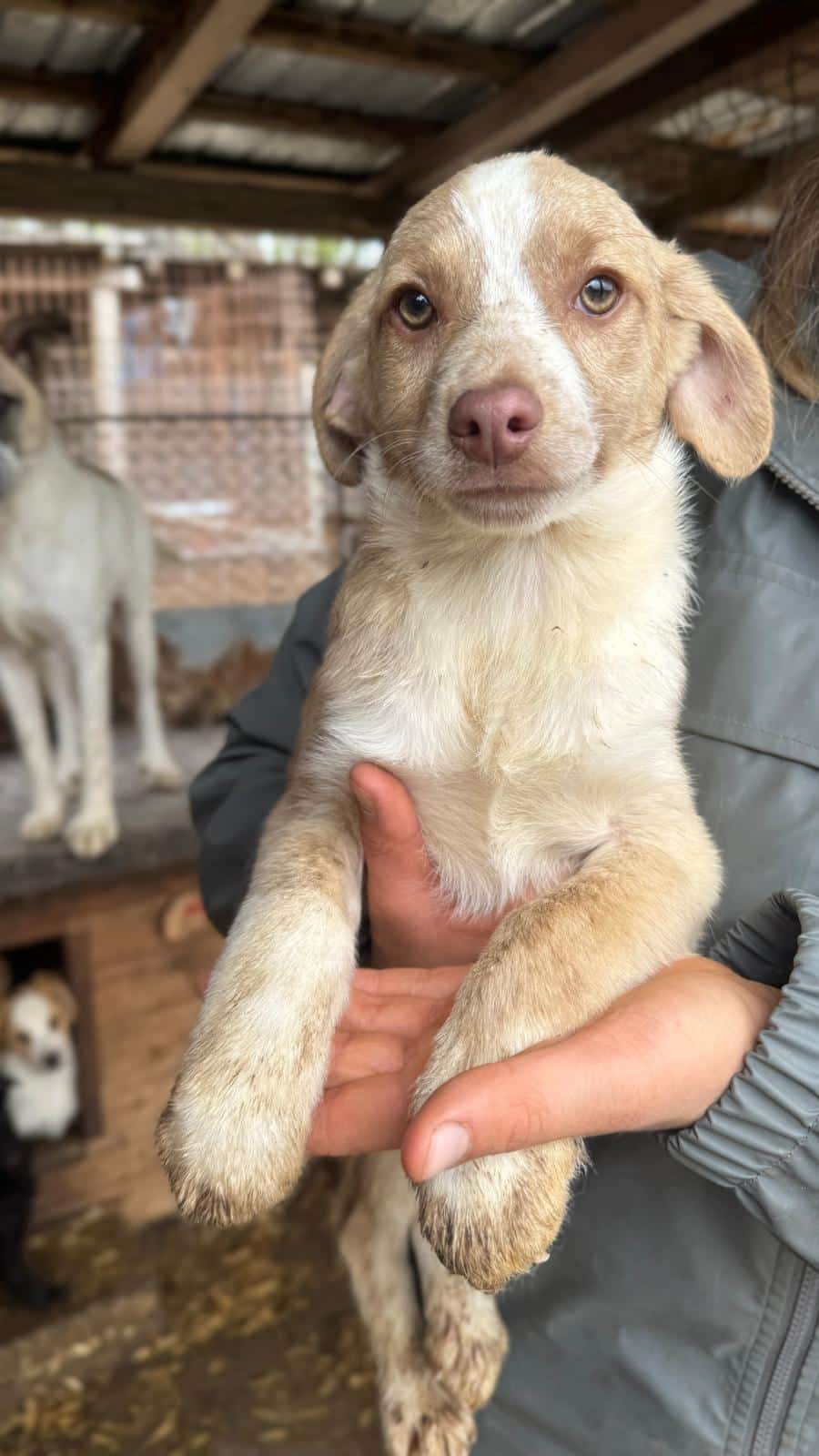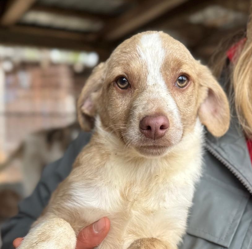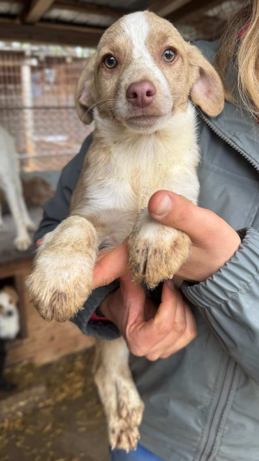 GITANA ist ein zuckersüßes, kleines Welpenmädchen. Sie sitzt mit ihrer Mama MARTHA, vier Geschwistern und noch vier weiteren Welpen in einem kleinen Kennel. Altersentsprechend ist GITANA neugierig, zutraulich, verschmust, welpentypisch und aufgeweckt. Wir konnten sie gut hochheben und überall anfassen und mit den Welpen in ihrem Kennel ist GITANA verträglich und verspielt.
