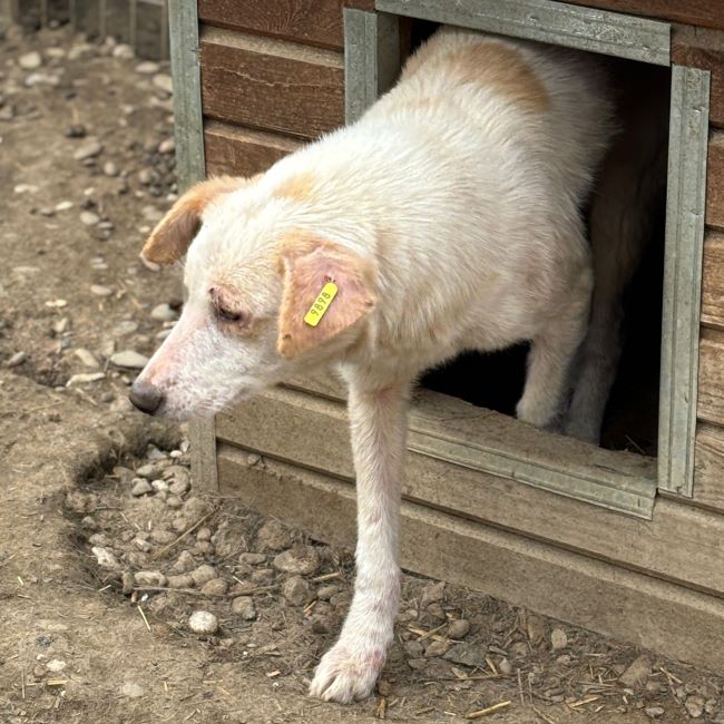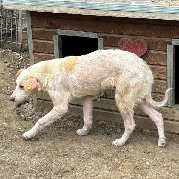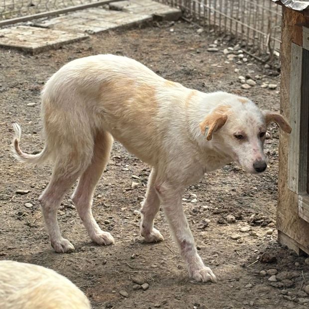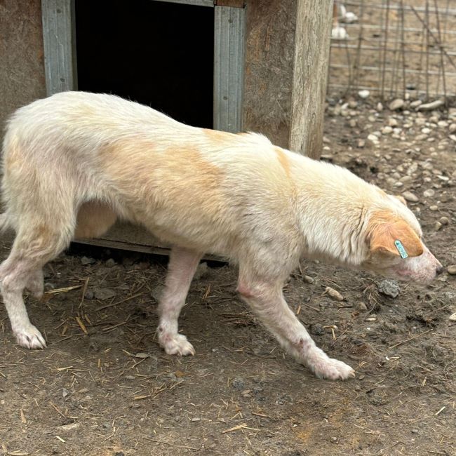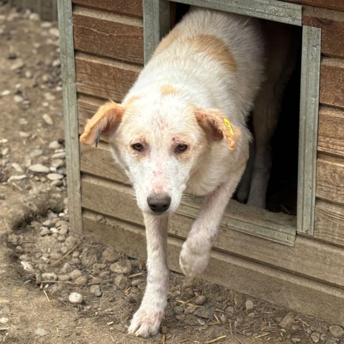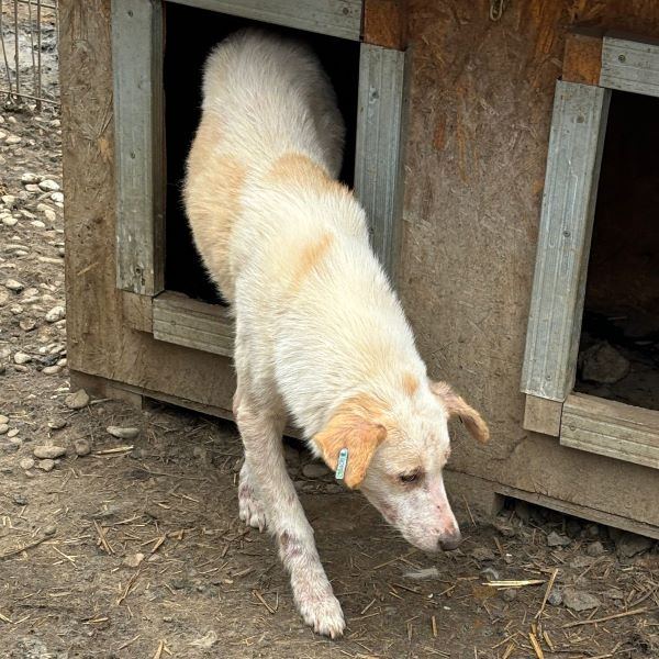 Diese schüchterne Hündin wusste anscheinend nicht so recht, was sie von unserem Besuch halten sollte. Vermutlich hat sie bisher kaum Erfahrung mit uns Menschen machen dürfen und weiß deshalb nicht, dass wir es nur gut mit ihr meinen. Unsicher beobachtete sie unser Tun und lief im Kennel umher, immer darauf bedacht, einen gewissen Sicherheitsabstand einzuhalten. Dabei zeigte sie sich durchgehend verträglich im gemischten Rudel. Sie lebt bereits seit ca. Oktober 2023 im großen Shelter und ist anscheinend immer noch total überfordert mit ihrer Situation. Ihre körperliche Verfassung ist leider obendrein nicht die beste – sie ist zu dünn und geplagt von lästigen Hautproblemen… Für diesen junge Hündin suchen wir dringend einen erfahrenen Platz bei lieben Menschen, die ihr die nötige Zeit und den Raum geben, in Ruhe anzukommen und heilen zu dürfen. Nach einiger Eingewöhnungszeit und mit einem souveränen Ersthund an ihrer Seite wird sie sicher auftauen und endlich Vertrauen lernen können.