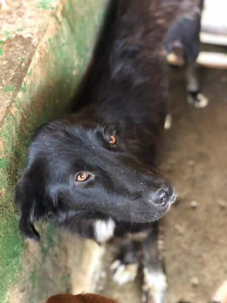 Im engen VetKennel lernten wir diese schwarze, komplett nette Hündin Ende August 2023 kennen. Ihr Gesäuge zeugt davon, dass sie wohl mal Welpen hatte. Sie war erst ein paar Tage im Shelter. Frisch kastriert und erste Impfung hatte sie bekommen. Zwischenzeitlich ist sie in einen Außenkennel umgezogen und muss da versuchen zurecht zu kommen. Im engen VetKennel zeigte sie sich sehr verträglich.