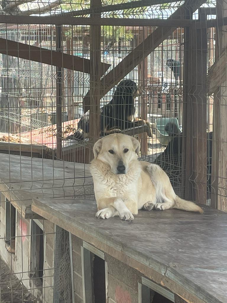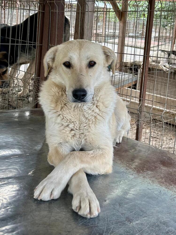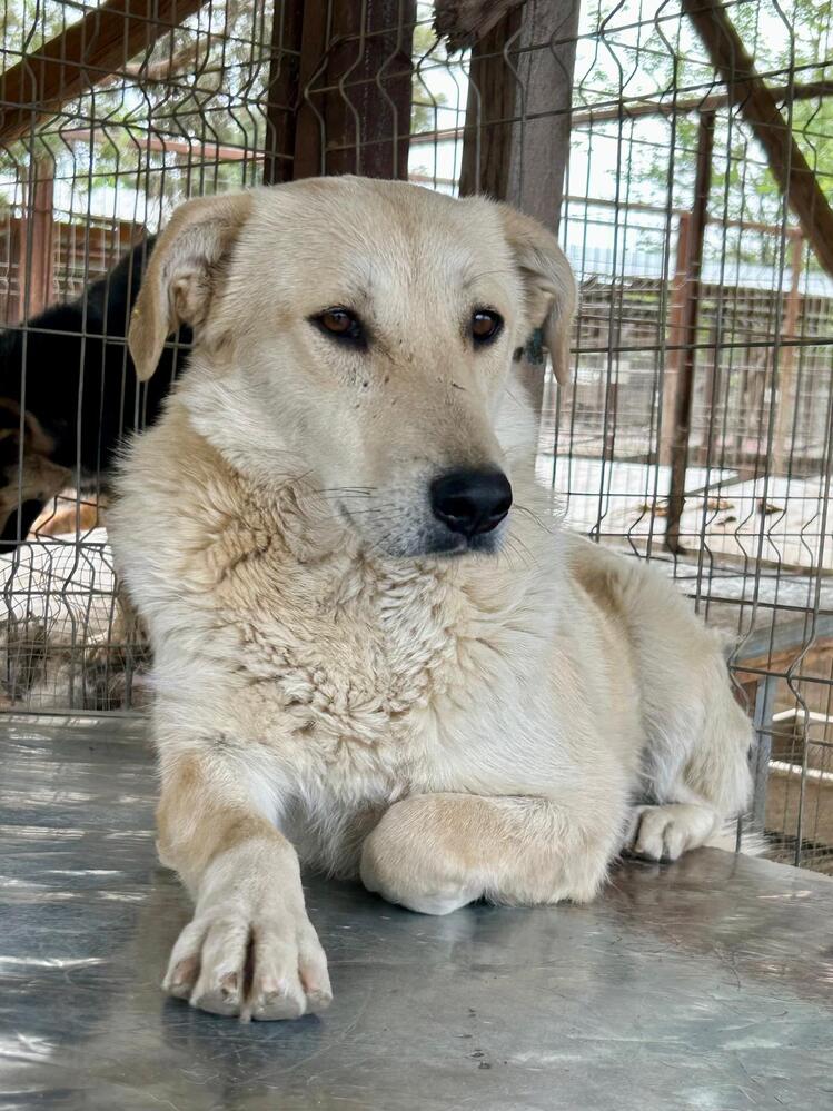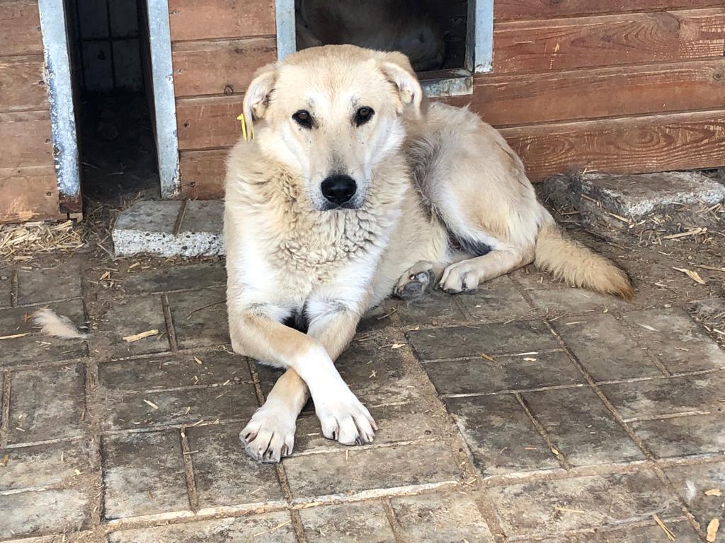 GODIVA nahm auch diesmal wieder gern Leckerlis aus der Hand. In der Hütte konnten wir sie unter Bedrängung auch anfassen. GODIVA ist eine zurückhaltende Hündin, die in einer anderen Umgebung bei sehr erfahrenen Menschen nach Eingewöhnungszeit sicherlich zutraulich werden würde.