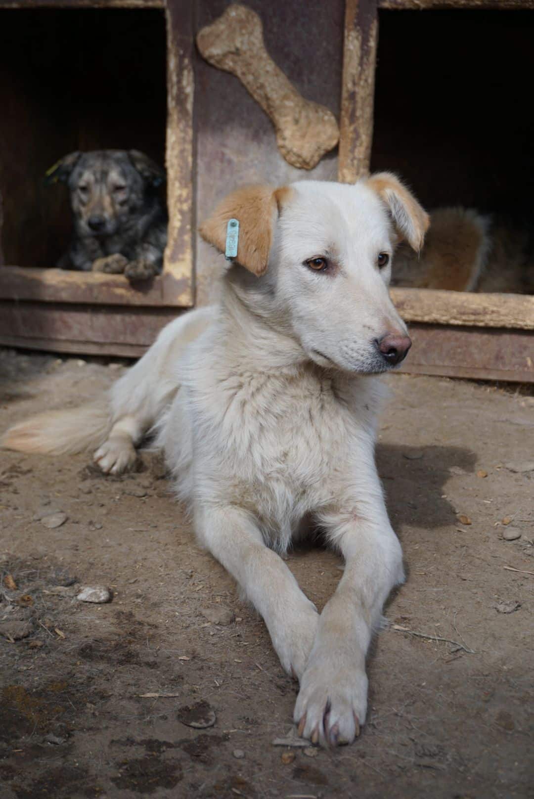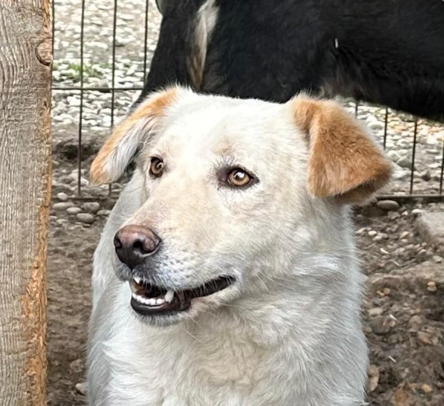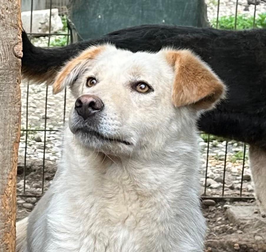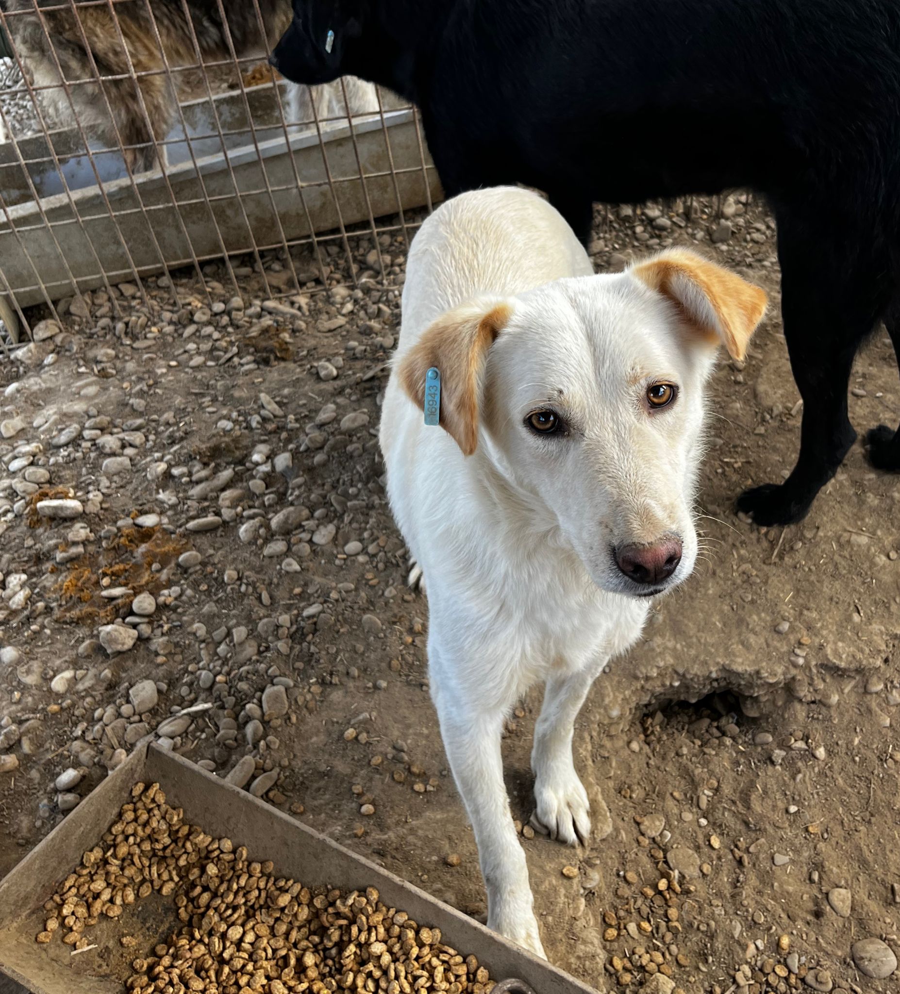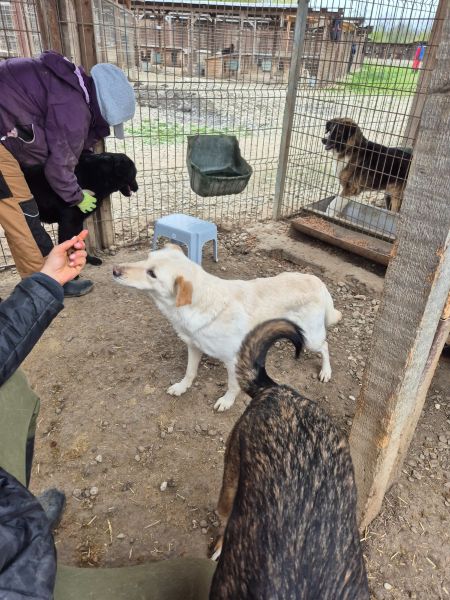 Goethe wirkte super fröhlich und war immer neugierig um uns herum. Er nahm gerne Leckerlies aus der Hand, allerdings fehlte ihm der Mut zum letzten Schritt, um gestreichelt zu werden. Wir hatten das Gefühl, dass er wegen eines anderen Hundes in seinem Kennel achtsam ist.