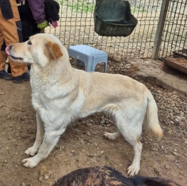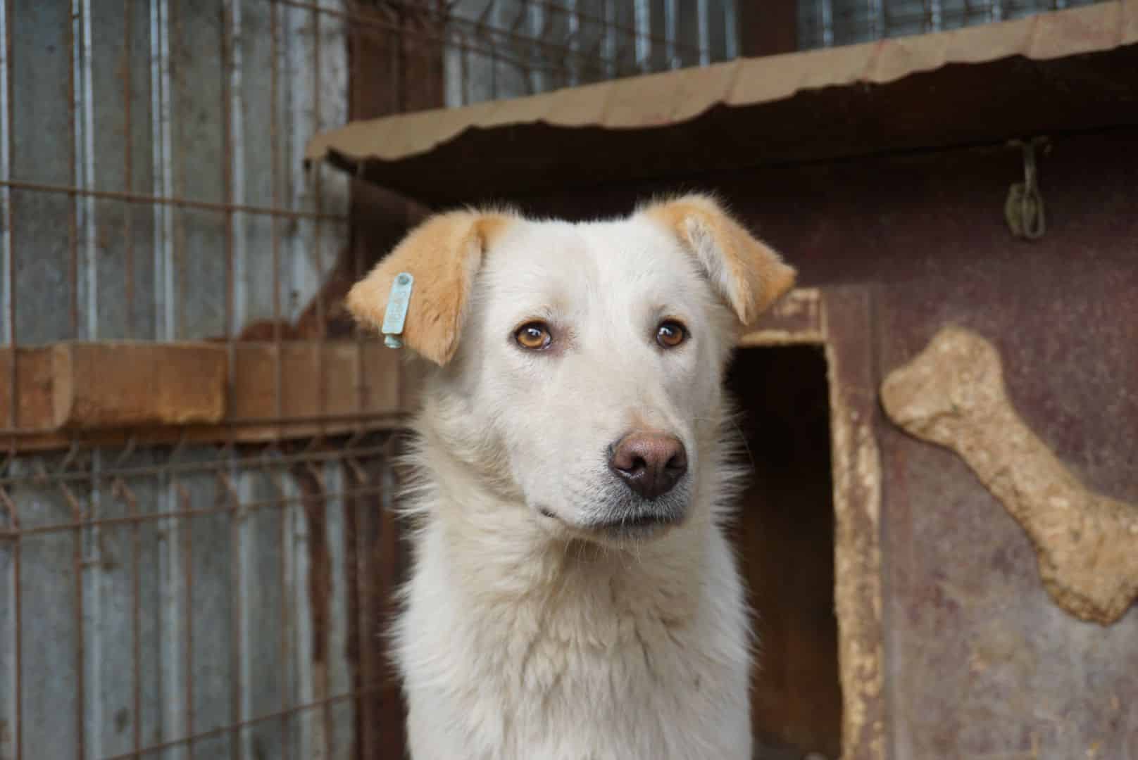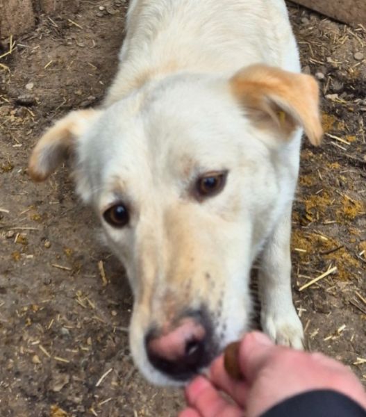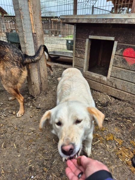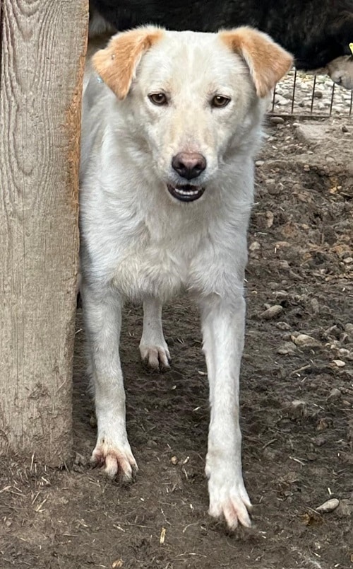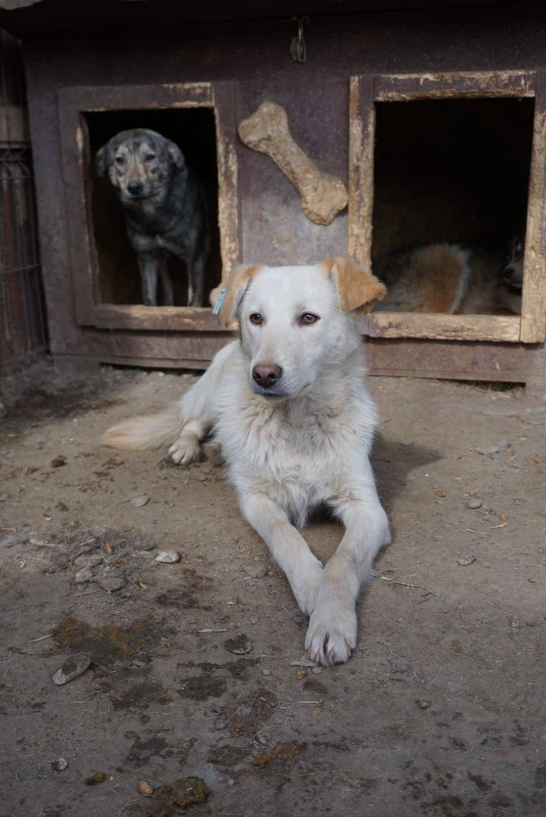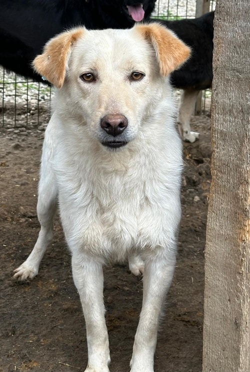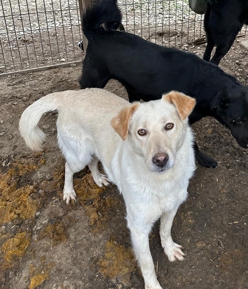 Goethe wirkte super fröhlich und war immer neugierig um uns herum. Er nahm gerne Leckerlies aus der Hand, allerdings fehlte ihm der Mut zum letzten Schritt, um gestreichelt zu werden. Wir hatten das Gefühl, dass er wegen eines anderen Hundes in seinem Kennel achtsam ist.