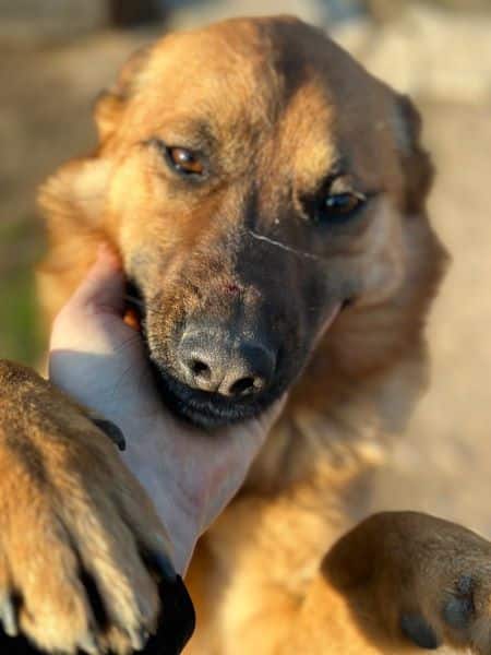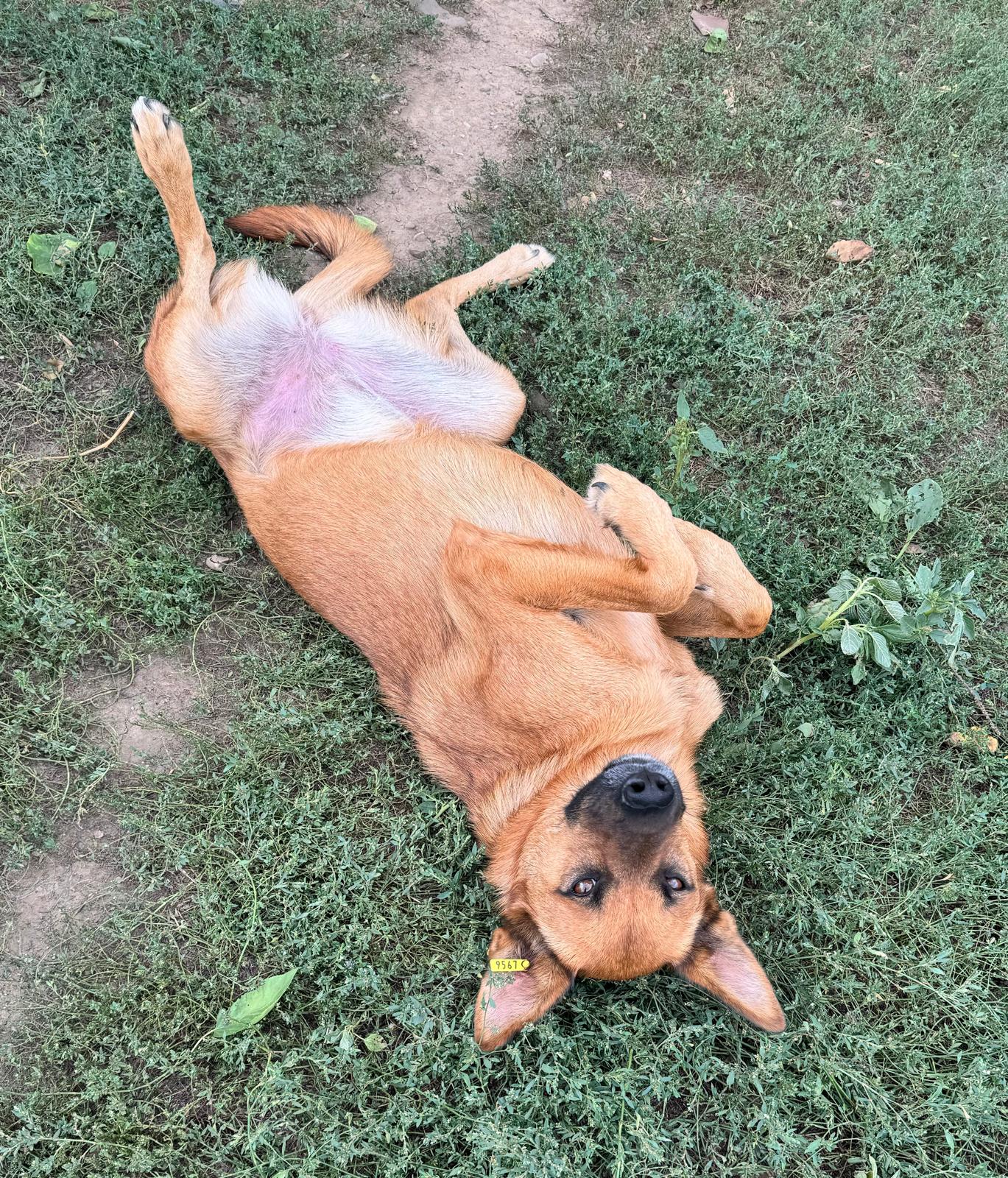 Die lustige GOLDIE ist immer in unserer Nähe, mal verschmust, mal verspielt. Sie ist einfach eine tolle Hündin, die sich ihr Bäuchlein kraulen ließ. Mit anderen Hunden im Yard ist sie verträglich und trotz ihres schiefen Vorderbeins fit. Für einen kurzen Moment konnten wir den Shelteralltag vergessen und eine Spielrunde einlegen. Natürlich nicht zu doll, da wir weitere Aufregung für die anderen Hunde im Shelter vermeiden wollten. Nach dem Beenden war GOLDIE wieder eine ruhige und sanfte Kuschelmaus. Wir hoffen nun wirklich, dass sie nach mehr als einem Jahr endlich ihre Familie findet.
